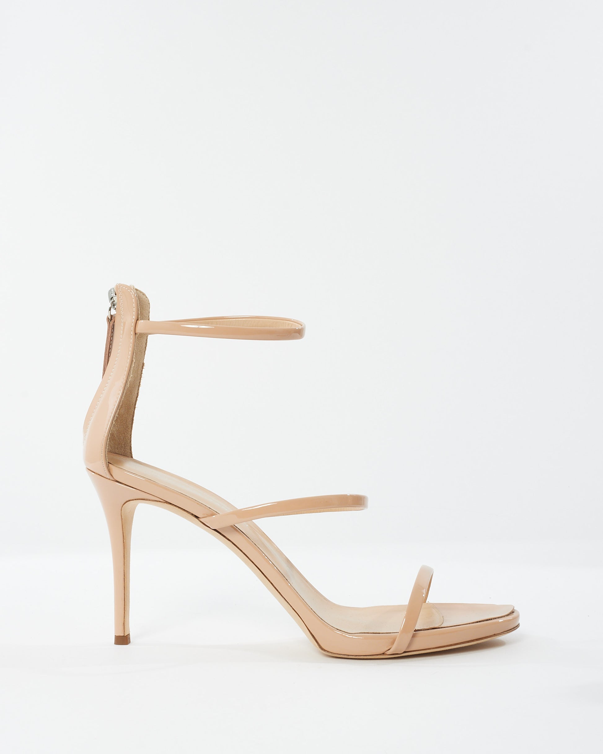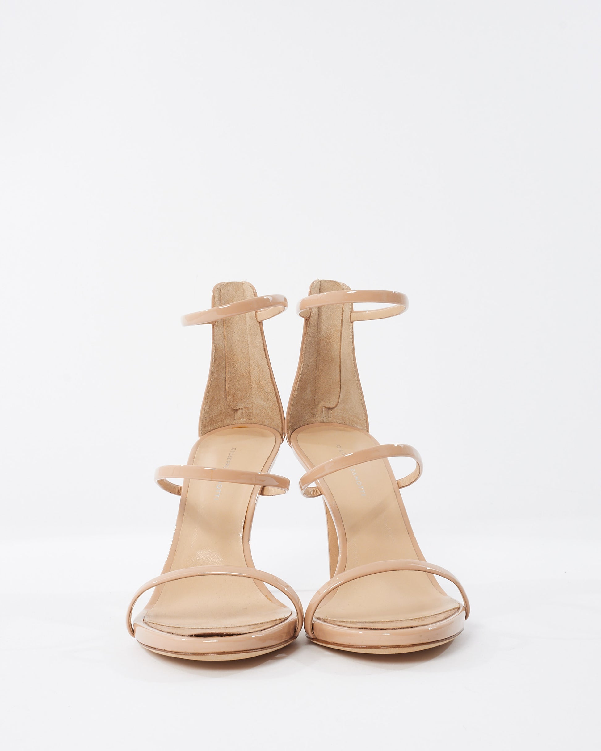 Explore Giuseppe Zanotti's exquisite collection of shoes, featuring this certified pre-owned Beige Patent Leather Harmony Sandals. Embodying timeless elegance and modern sustainability, each piece, including favorites like this, is authenticated by Retyche. Discover sustainable luxury — shop our current treasures or find inspiration for your next coveted find.