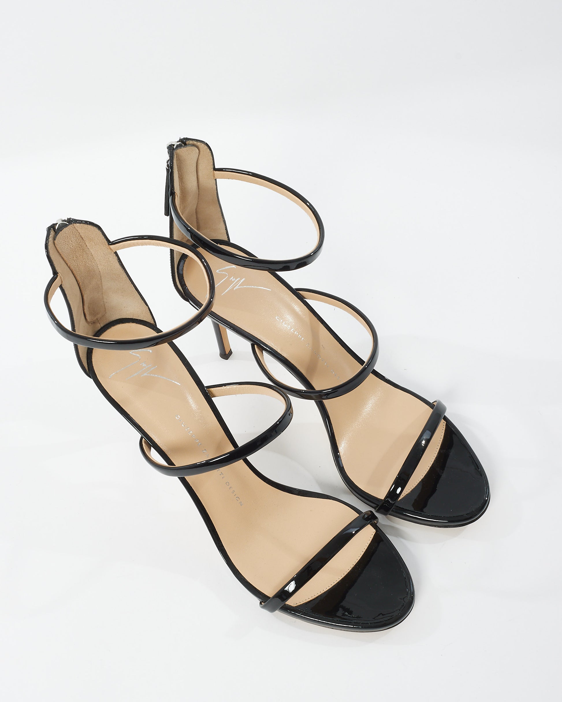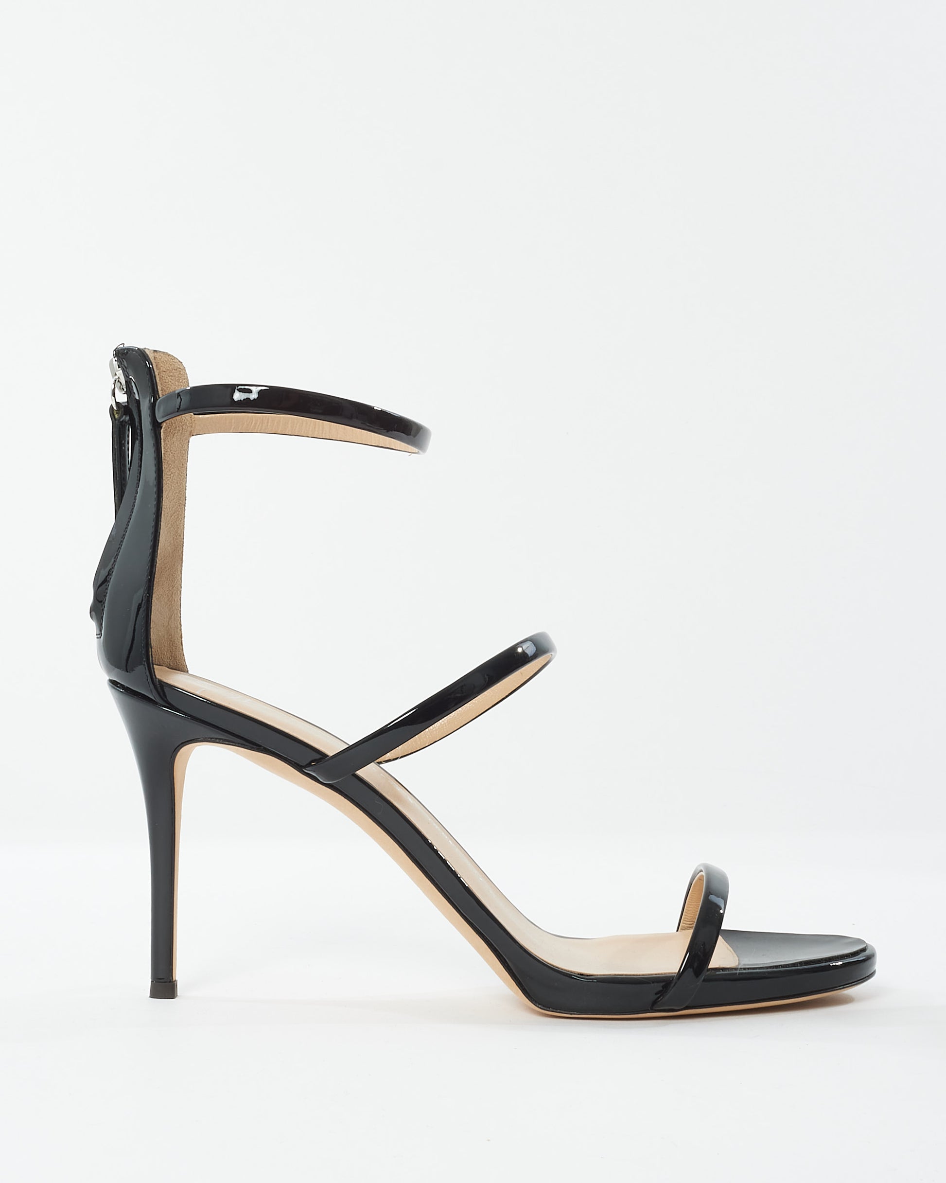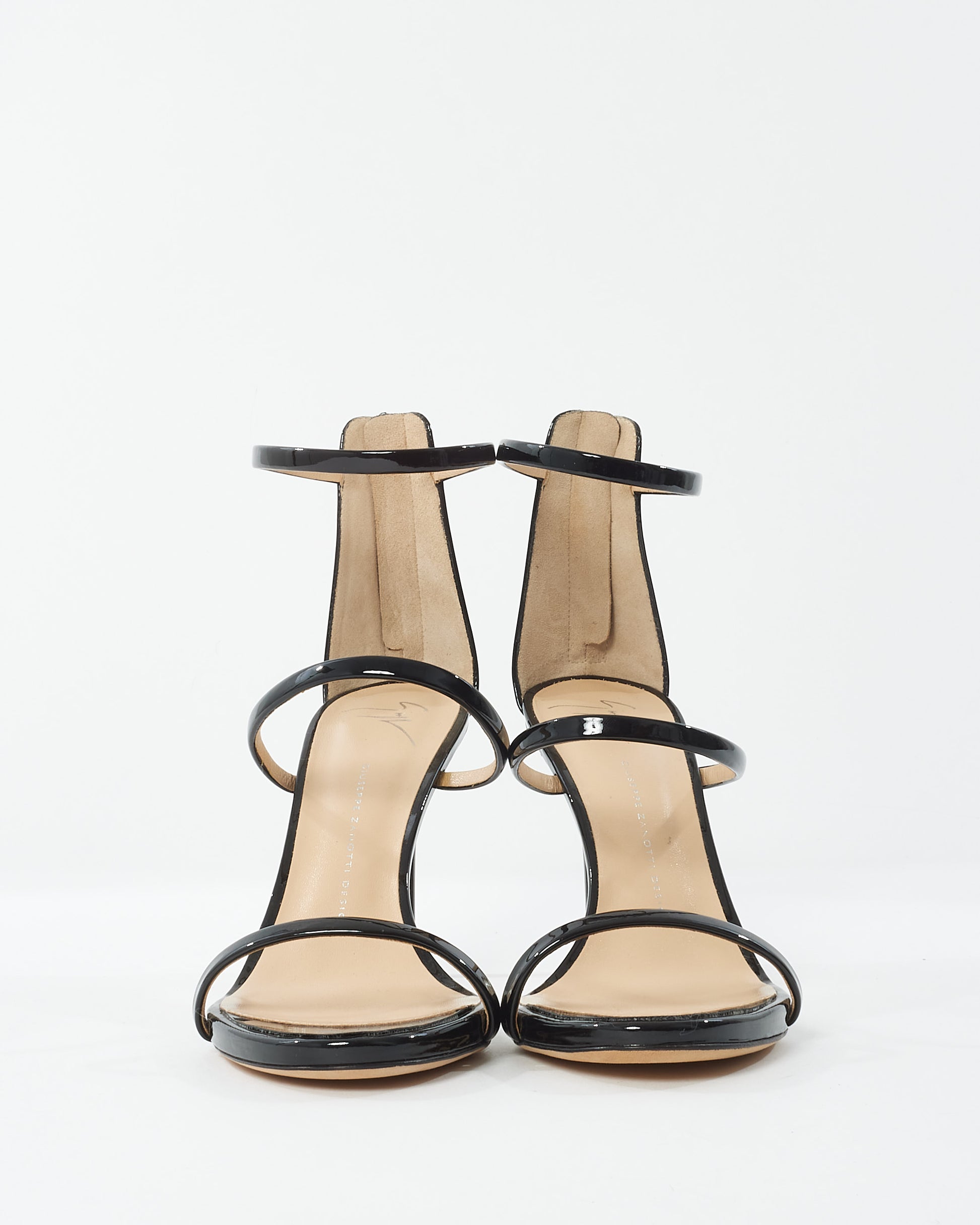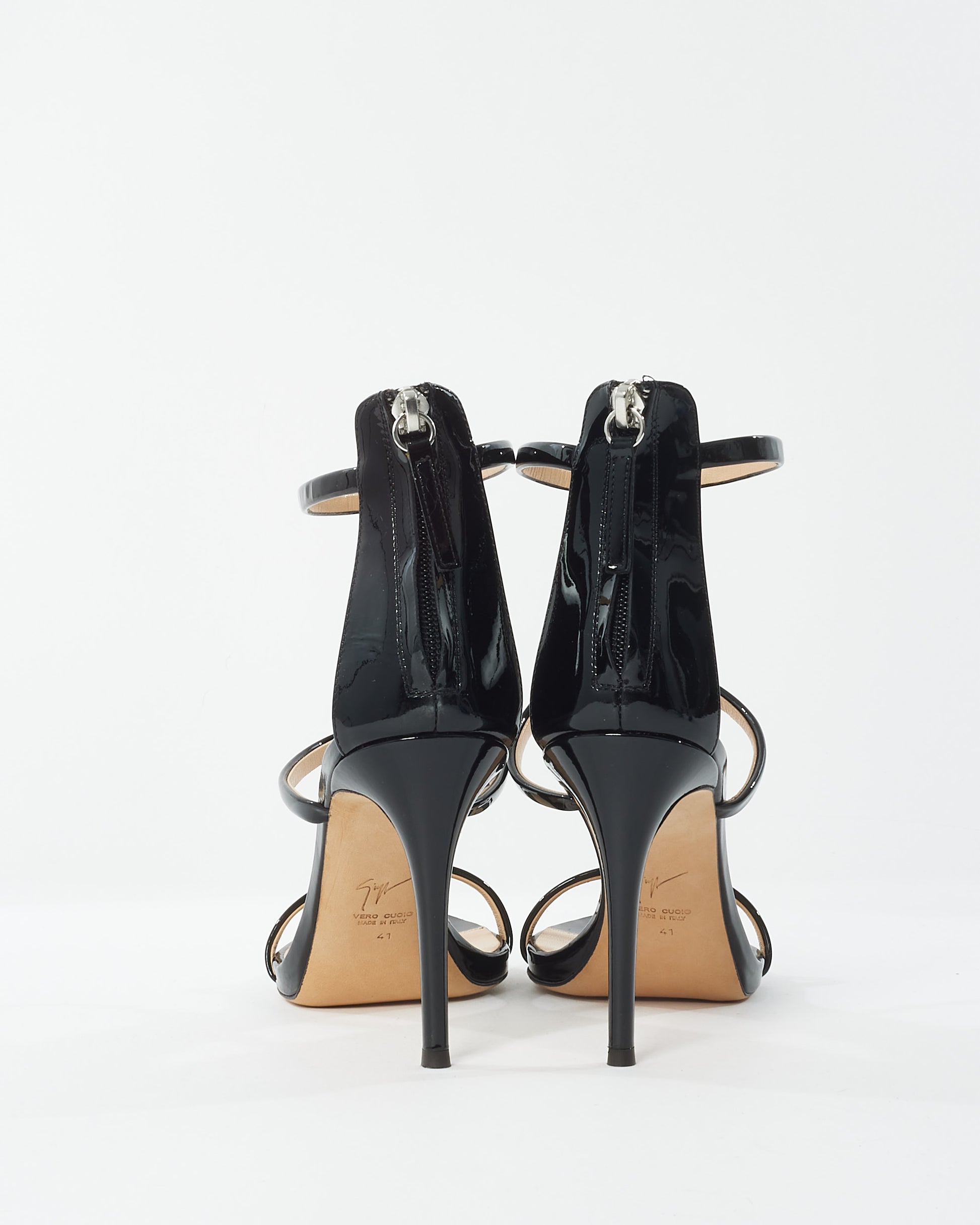 Explore Giuseppe Zanotti's exquisite collection of shoes, featuring this certified pre-owned Black Patent Leather Harmony Sandals. Embodying timeless elegance and modern sustainability, each piece, including favorites like this, is authenticated by Retyche. Discover sustainable luxury — shop our current treasures or find inspiration for your next coveted find.