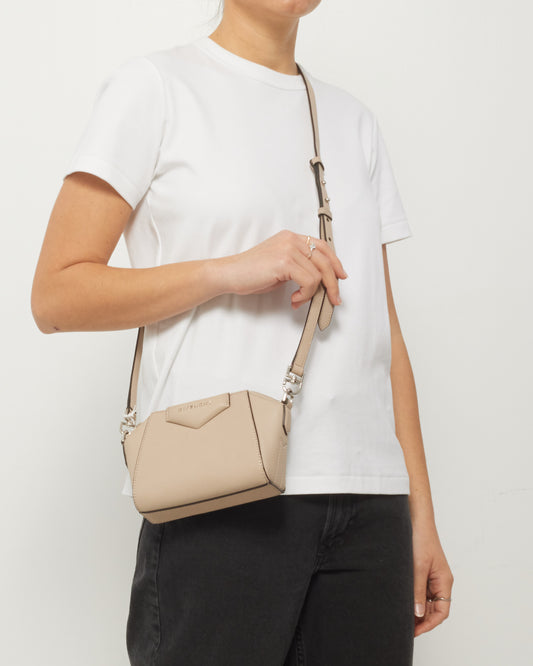 Beige "Dune" Leather Nano Antigona Crossbody Bag