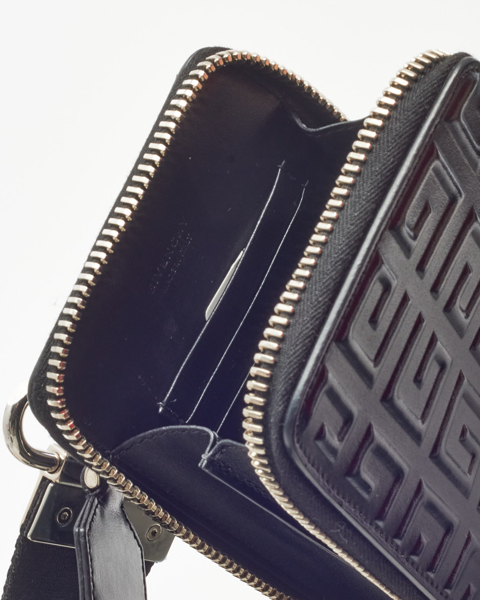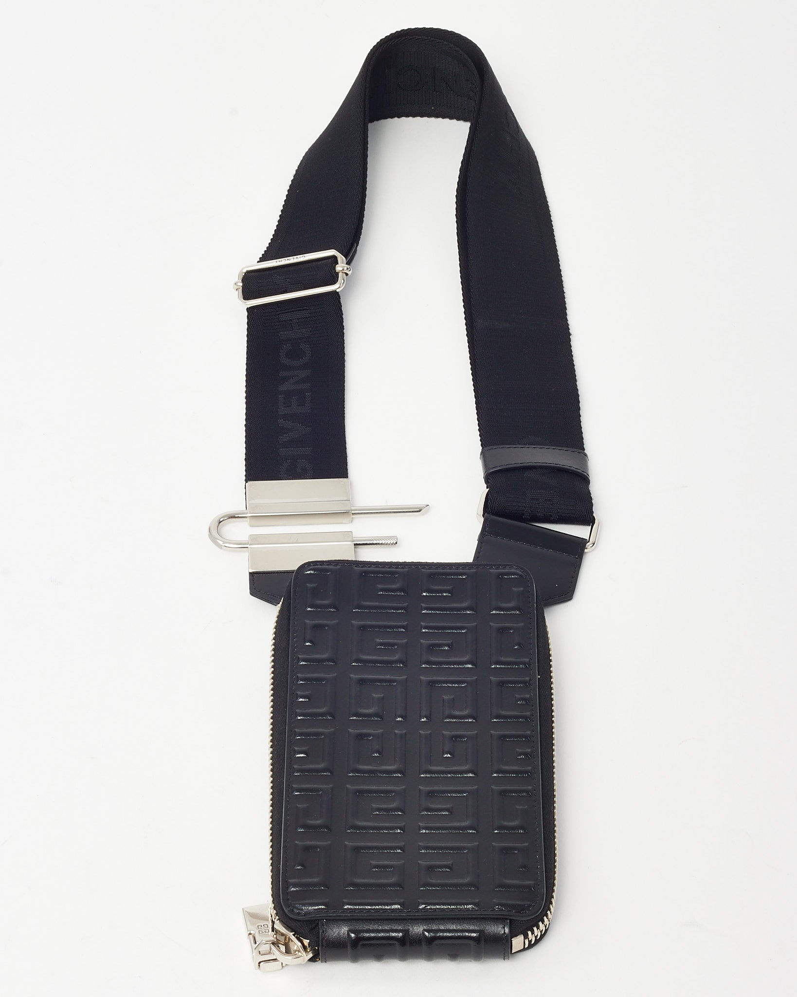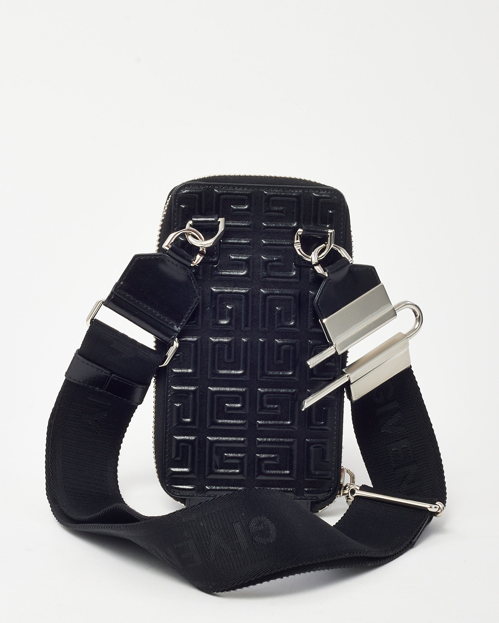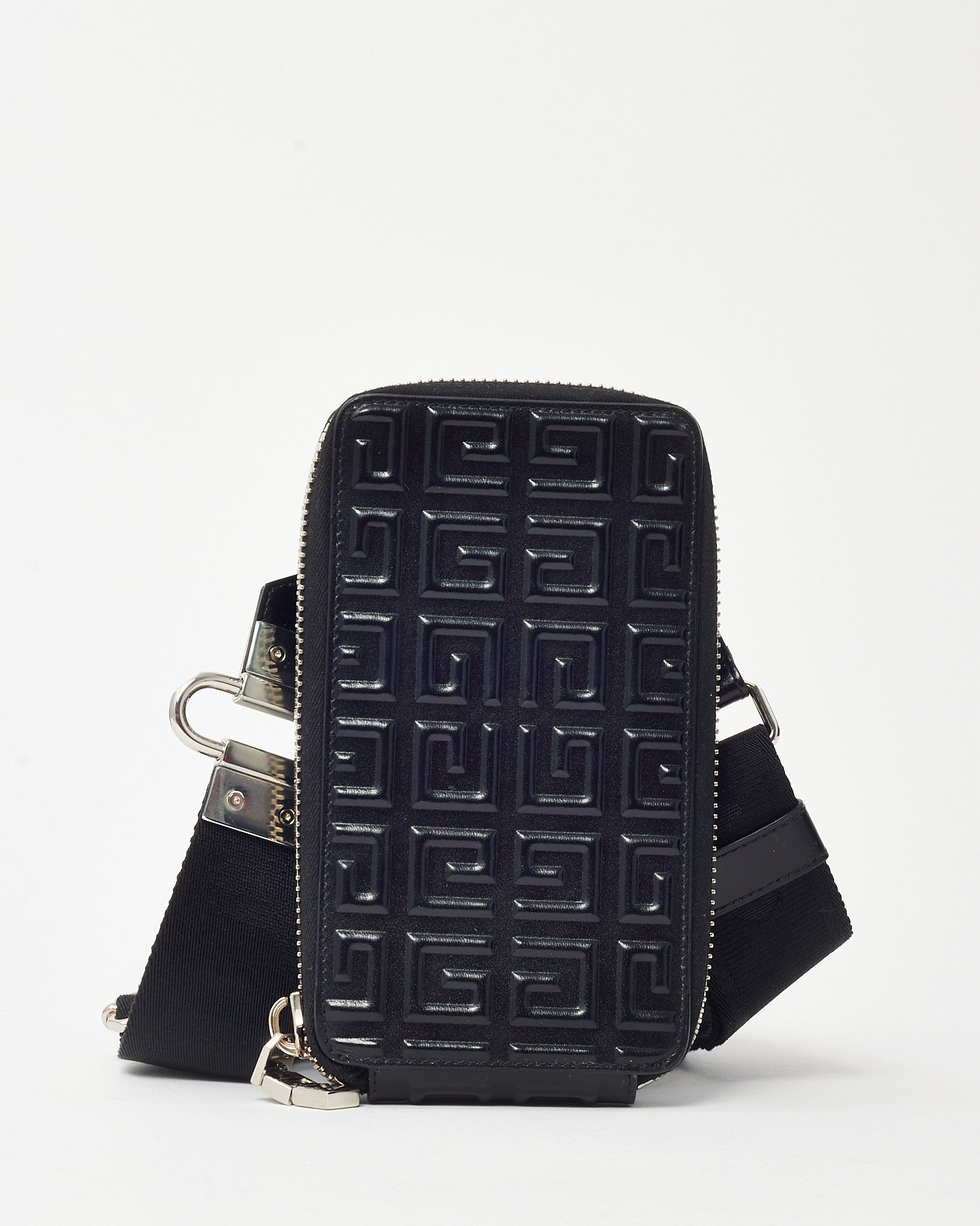 Make a bold, modern statement with this pre-loved authentic Givenchy Shiny Black Monogram Embossed Leather Antigona U Organizer Crossbody Bag, crafted in glossy embossed leather featuring the signature Givenchy monogram motif. The structured Antigona U silhouette delivers sleek architectural lines, while the polished hardware and adjustable strap offer versatile crossbody wear. Designed with an organized interior to hold essentials securely, this compact designer bag blends contemporary edge with everyday functionality. A refined Givenchy leather crossbody that embodies luxury craftsmanship and statement branding in one standout piece.