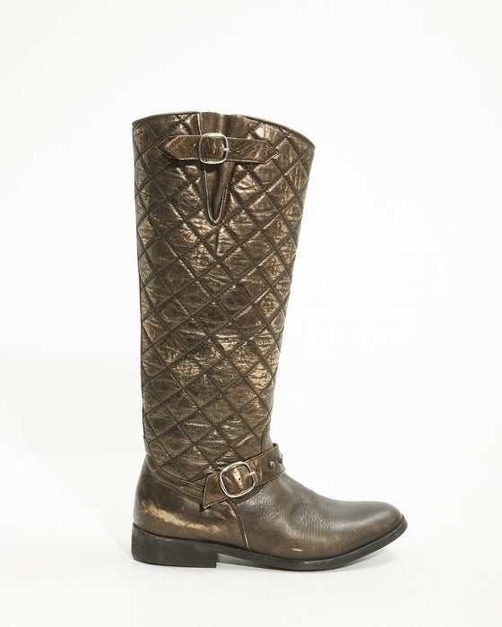 Antique Metallic Gold Quilted Cowboy Boots - 38