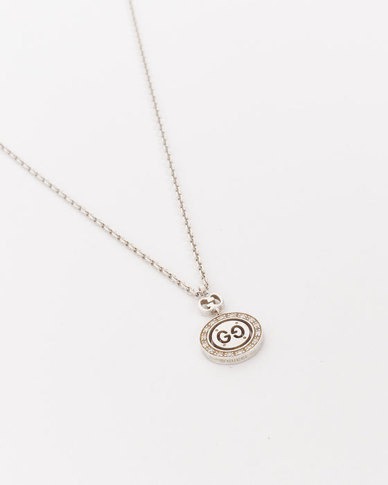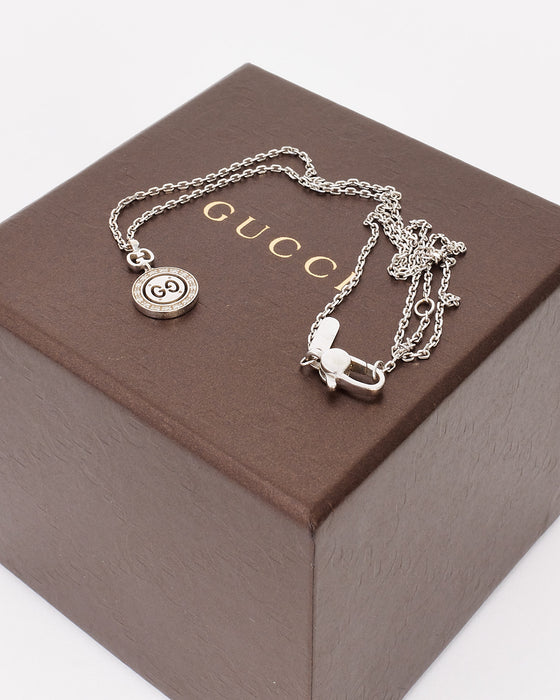 Vintage 18K White Gold 2000 Diamond Double GG Twirl Bit Pendant Necklace