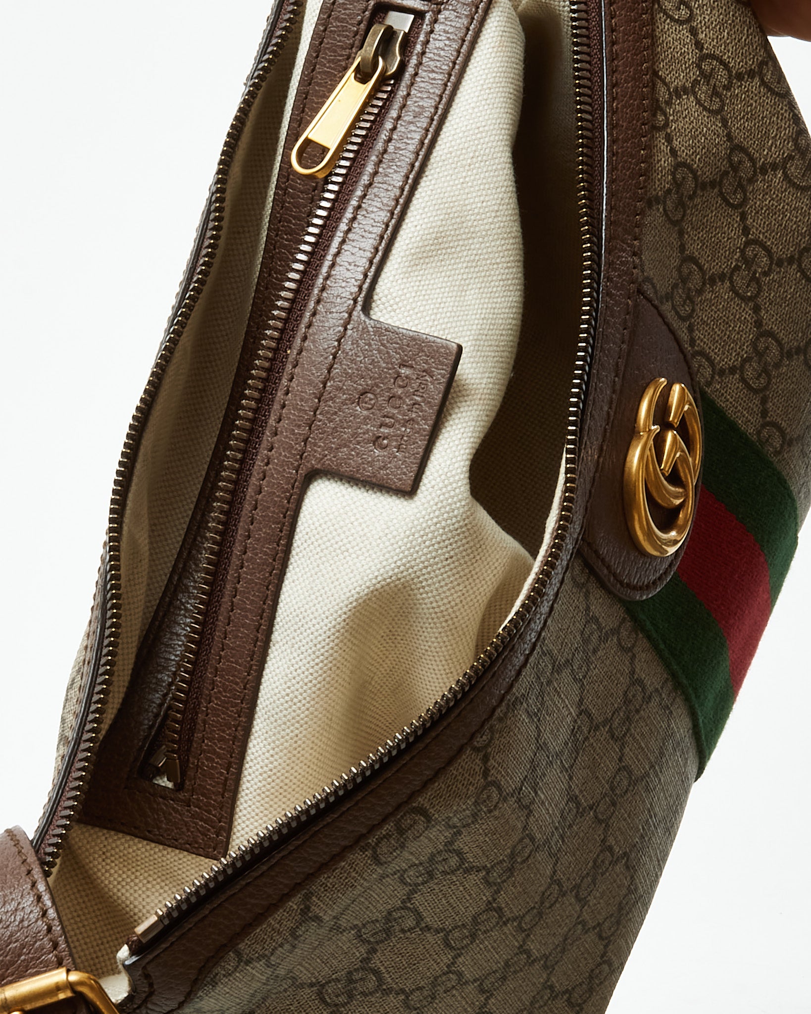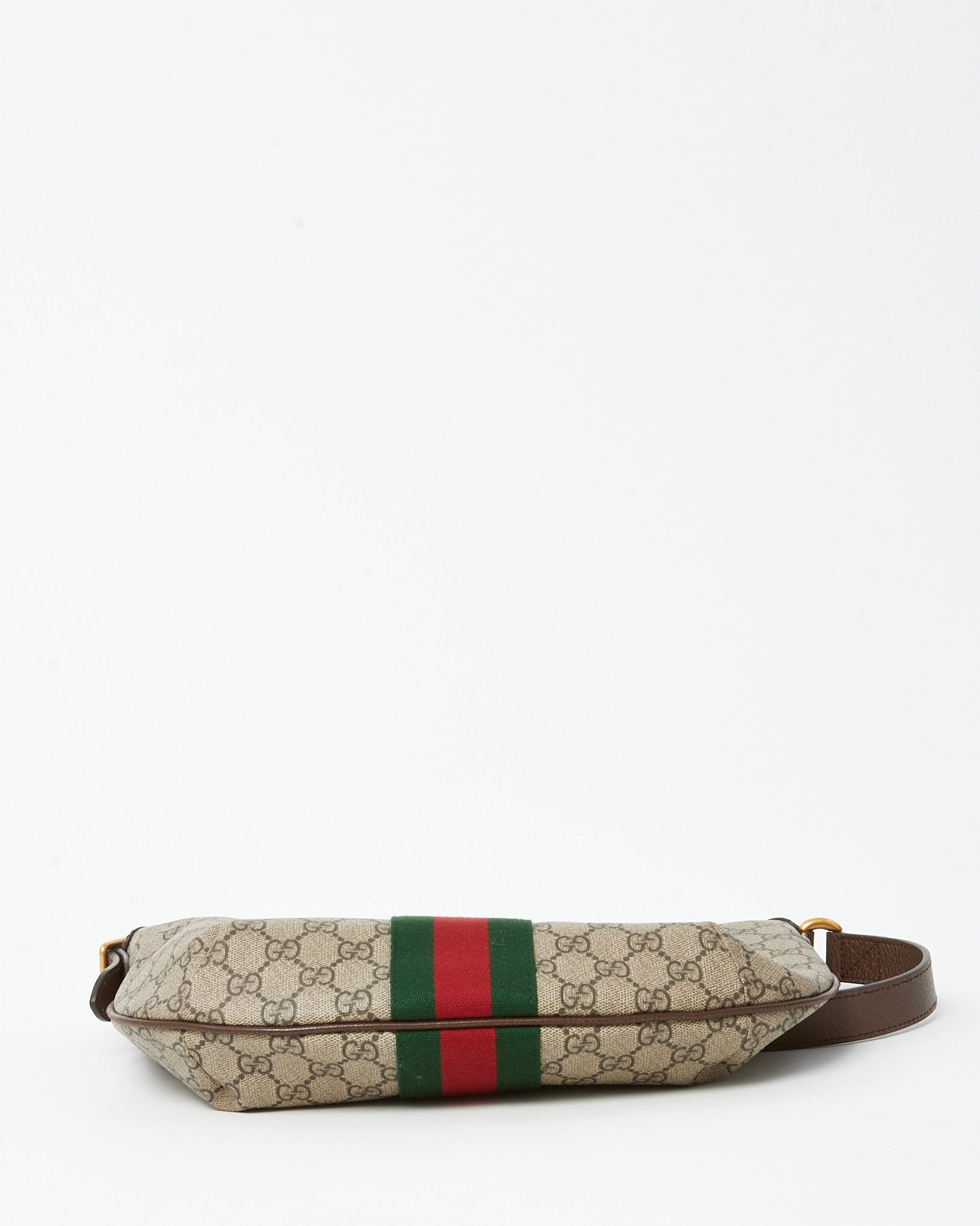 Beige and Beige Monogram GG Supreme Canvas Small Web Ophidia Half Moon Hobo Bag