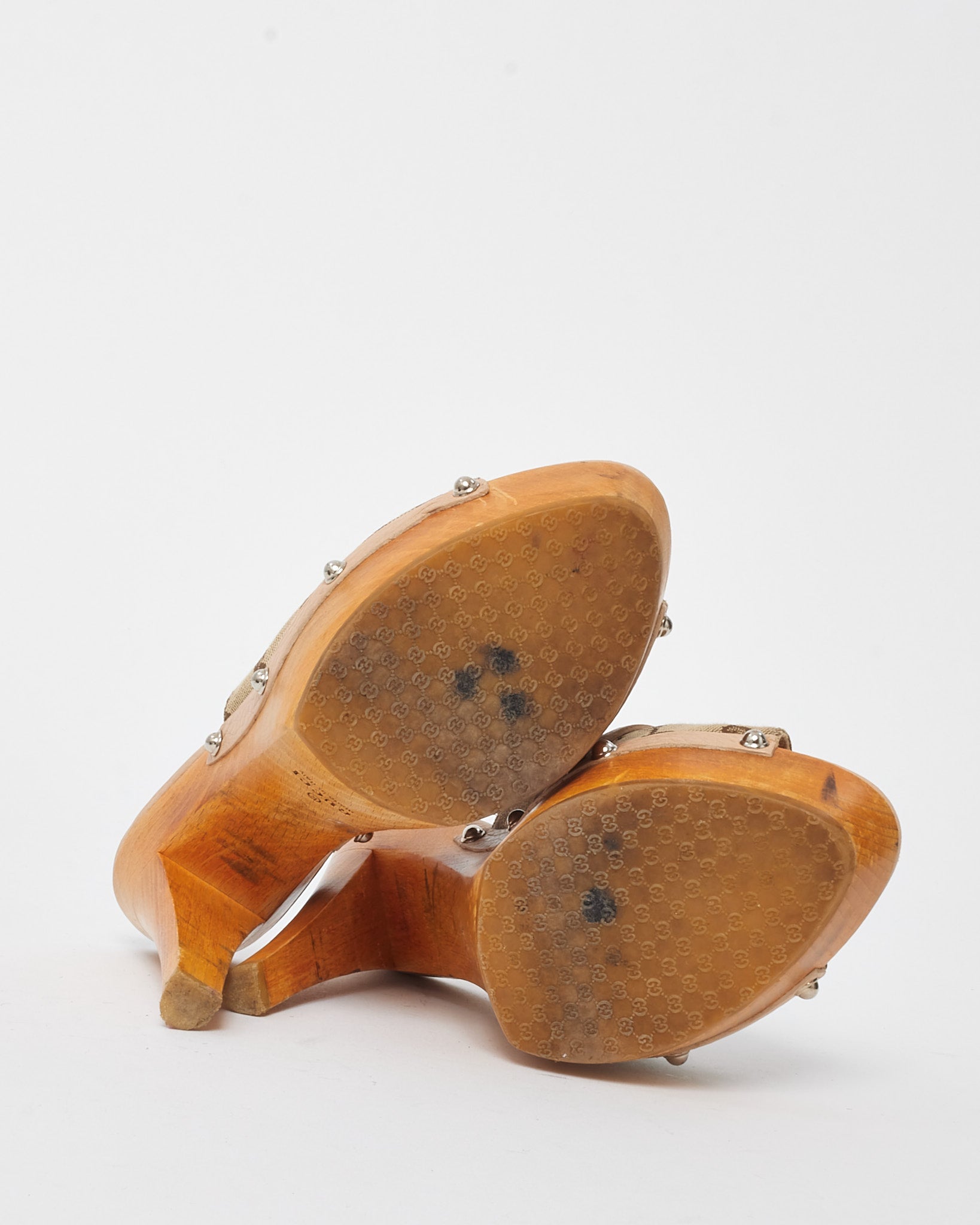 A refined nod to Gucci’s equestrian heritage, these pre-loved authentic Horsebit Mule Heels feature the house’s iconic beige and brown GG monogram canvas. The classic silhouette is elevated with the signature gold-tone horsebit hardware at the vamp, while the open-toe design and stacked heel offer timeless sophistication with everyday comfort. A chic choice for warm-weather outings or polished casual ensembles, these heels embody the effortless luxury synonymous with Gucci.