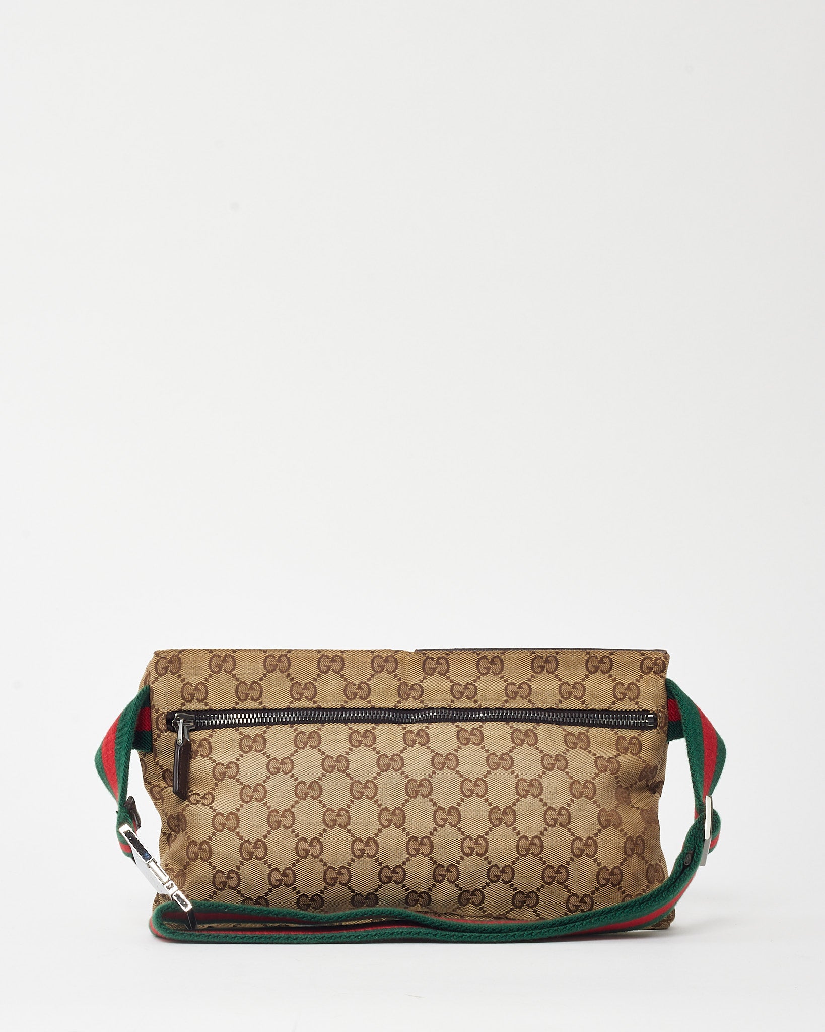 Beige and Brown Monogram GG Canvas Double Pocket Belt Bag