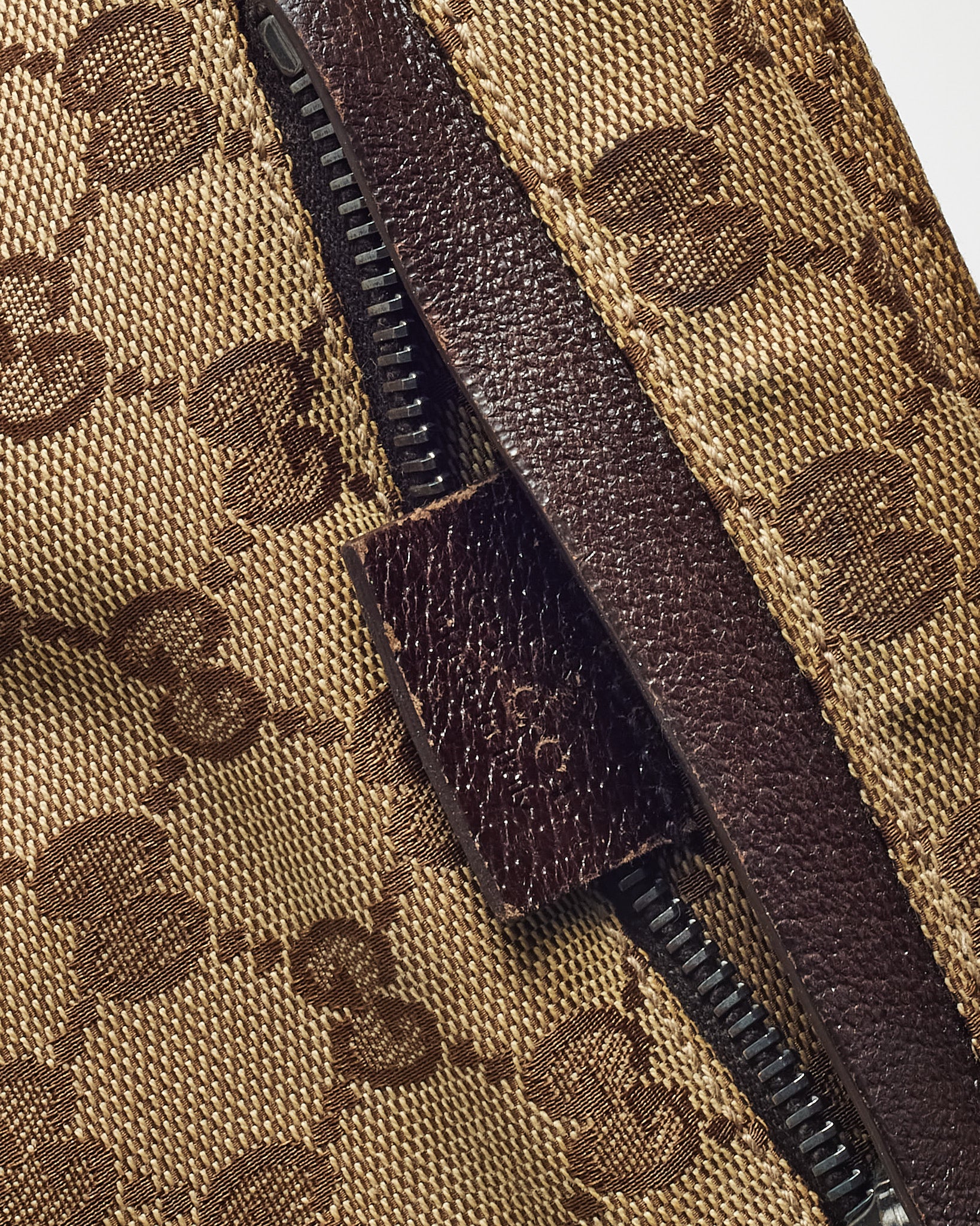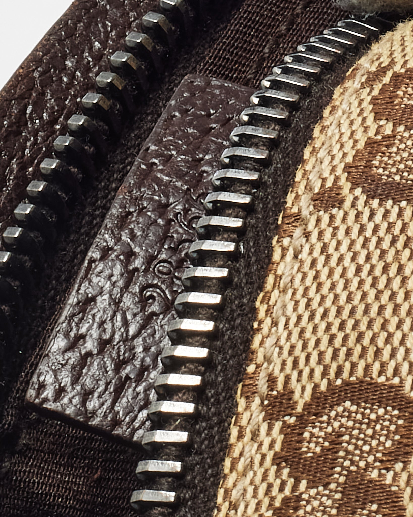 Blend function with signature style in this pre-loved authentic Gucci Double Pocket Belt Bag, crafted in beige and brown GG monogram canvas. This hands-free silhouette features two zippered compartments with leather trim and adjustable waist strap for a secure fit. Perfect for travel, festivals, or daily errands, it combines practicality with iconic Gucci flair in a compact, street-ready design.