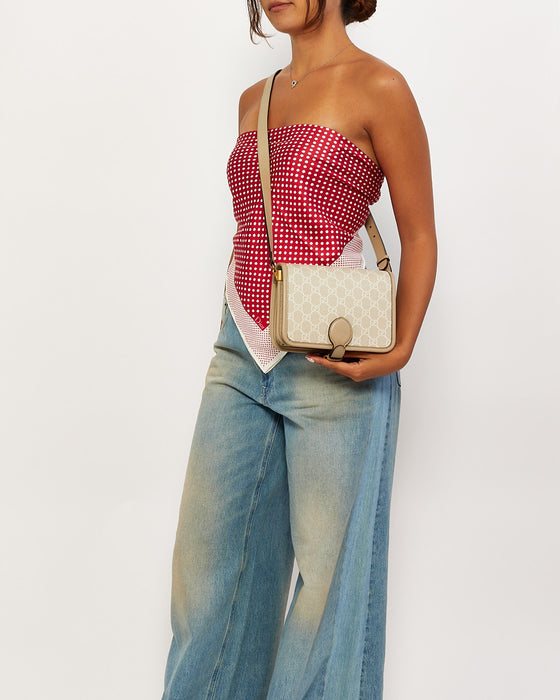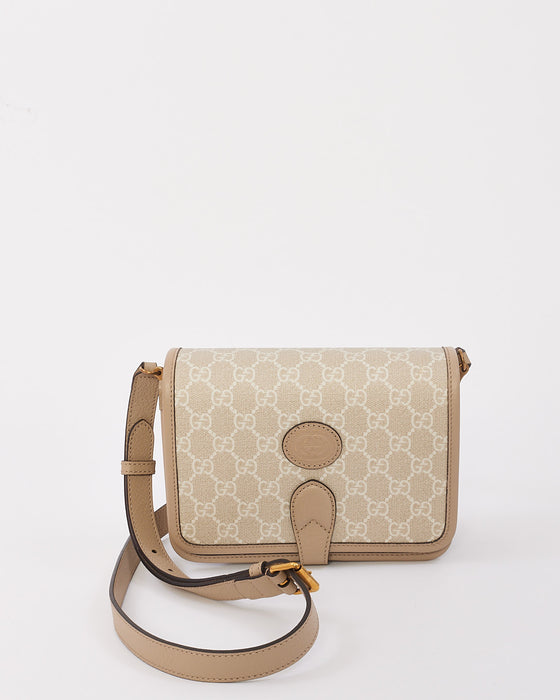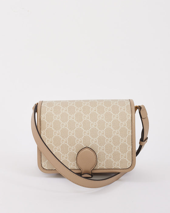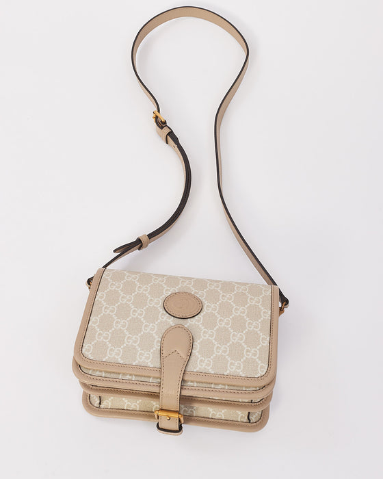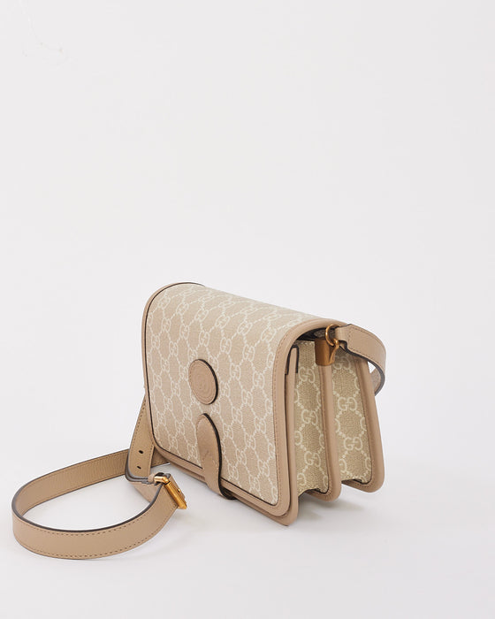 Beige & White GG Supreme Canvas Interlocking G Mini Shoulder Bag
