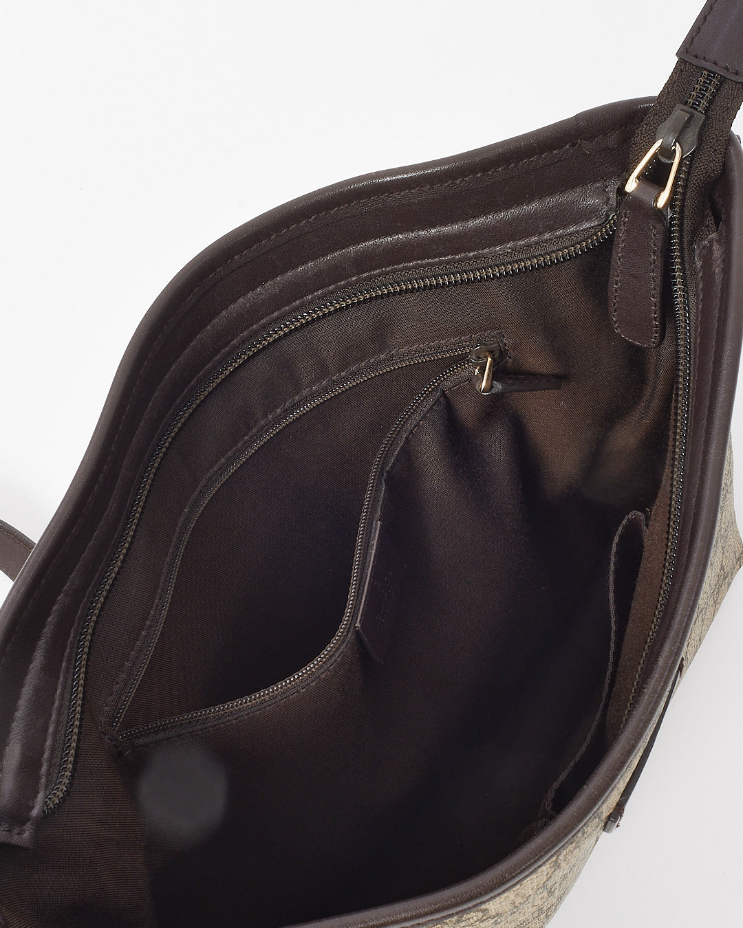 Understated and iconic, this pre-owned authentic Gucci Flat Messenger Crossbody Bag is crafted in durable beige and ebony GG monogram coated canvas with tonal leather trim. Designed for ease and versatility, the slim silhouette features an adjustable canvas strap, front zip pocket, and secure top zip closure—ideal for daily essentials on the go.