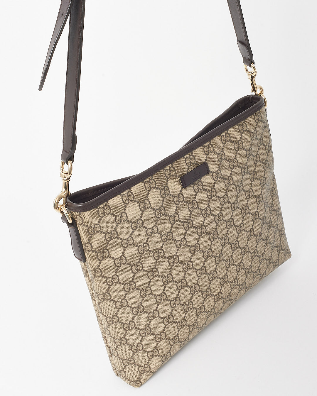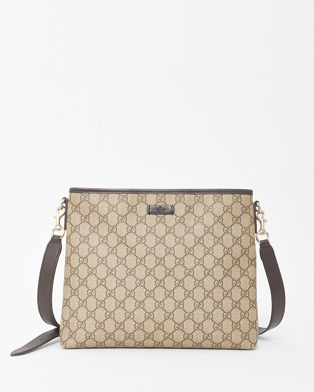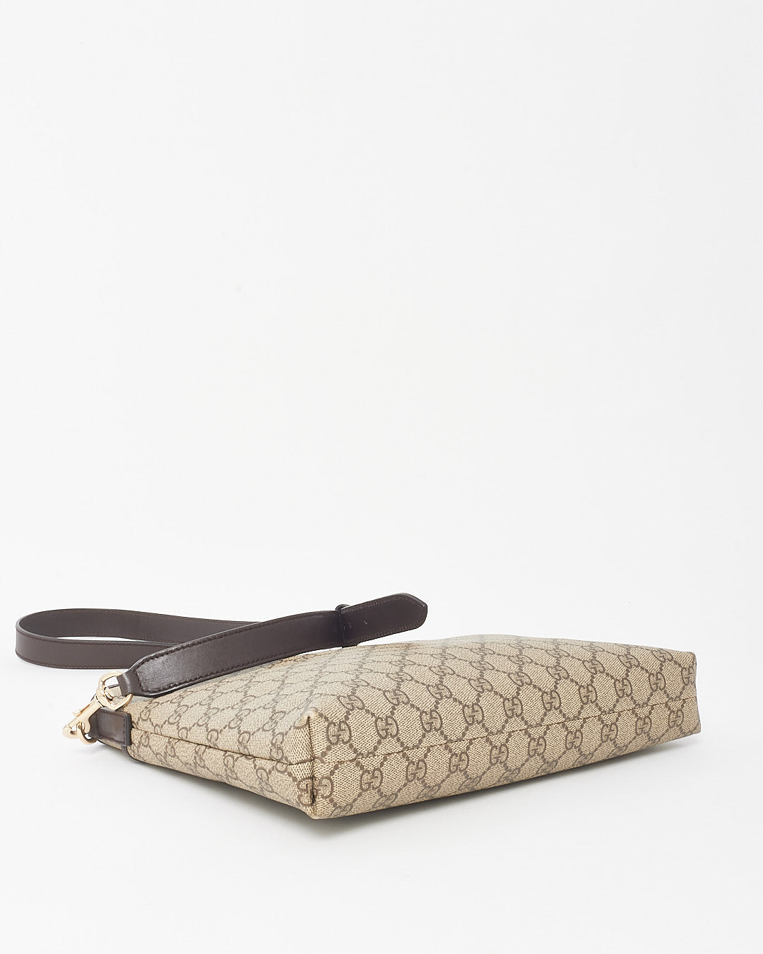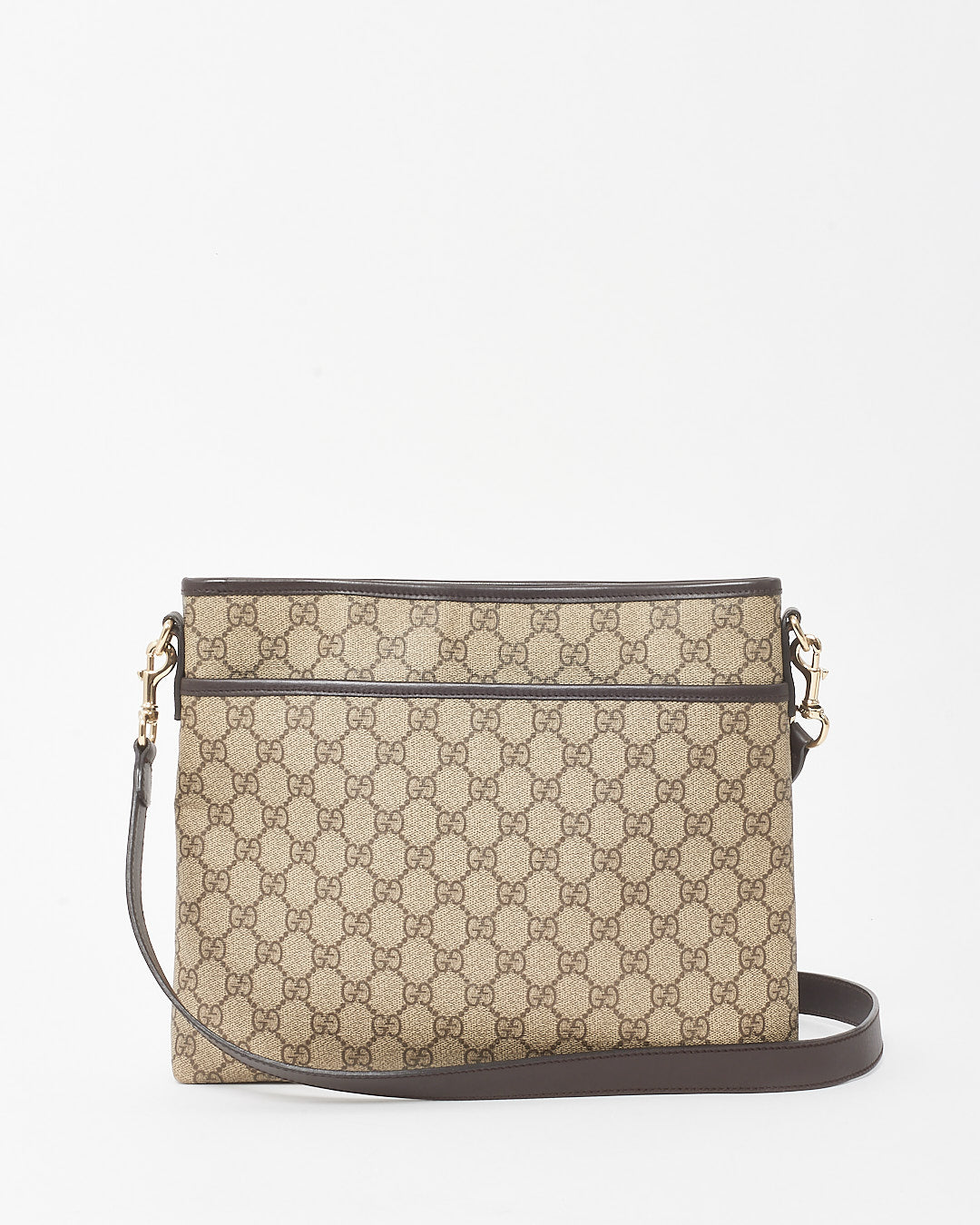 Beige/Ebony GG Monogram Coated Canvas Flat Messenger Crossbody Bag