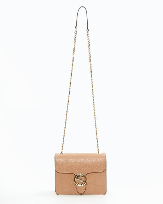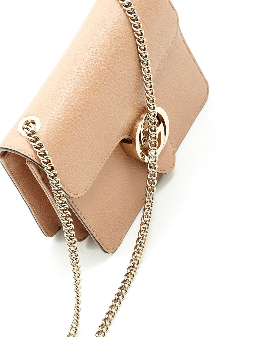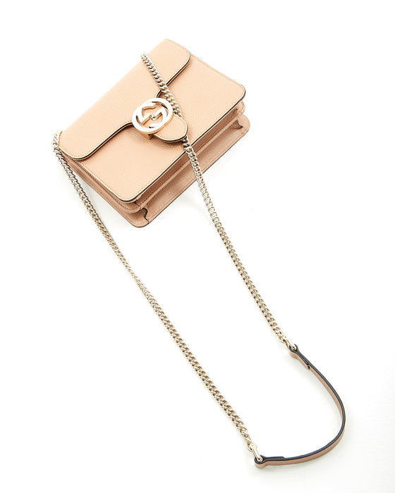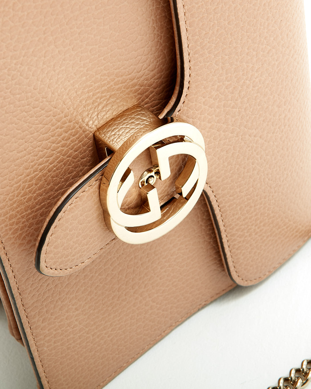 Beige Pebbled Leather Interlocking GG Chain Crossbody Bag