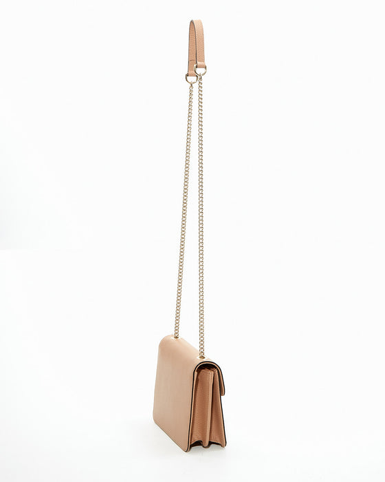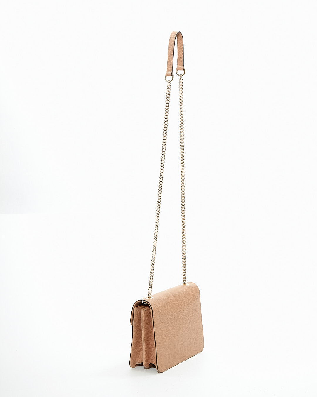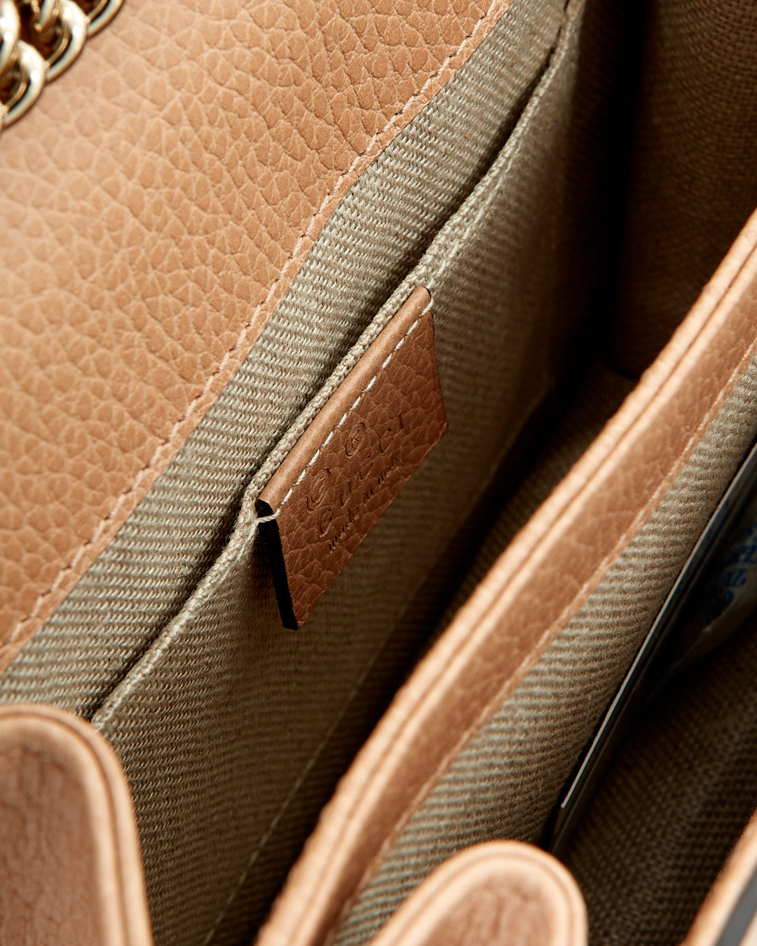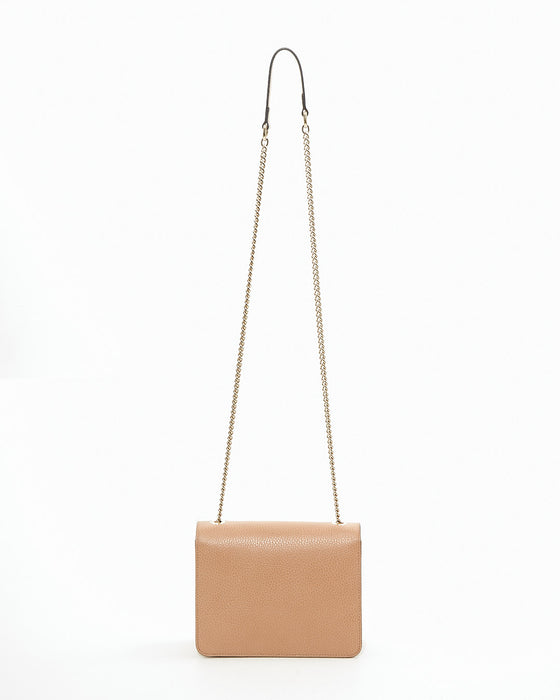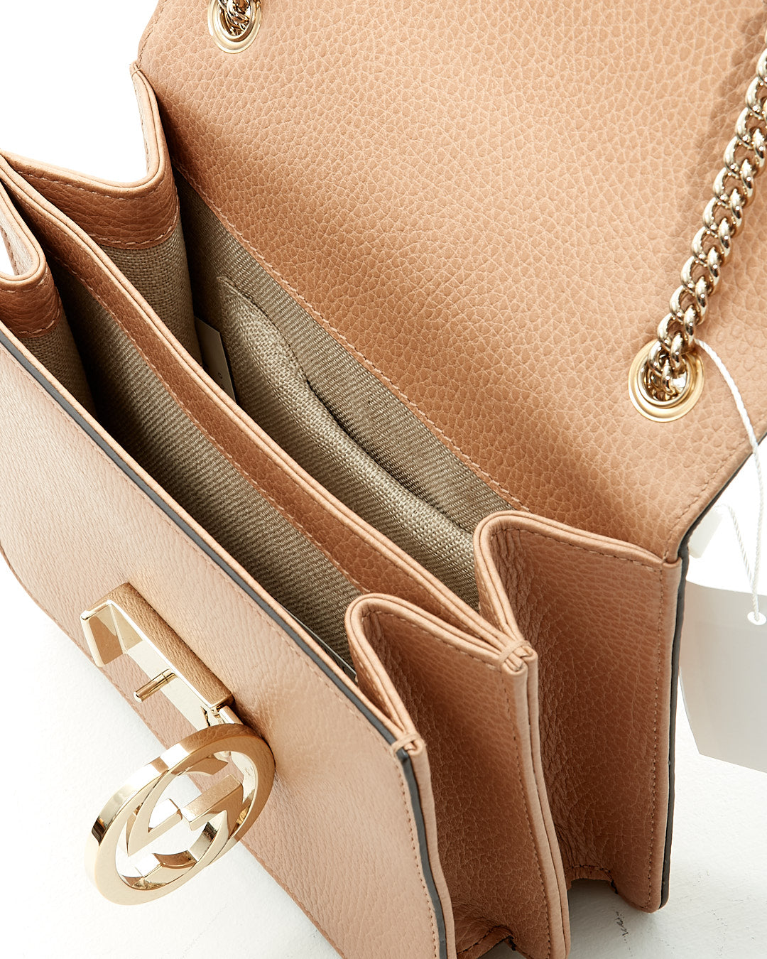Beige Pebbled Leather Interlocking GG Chain Crossbody Bag