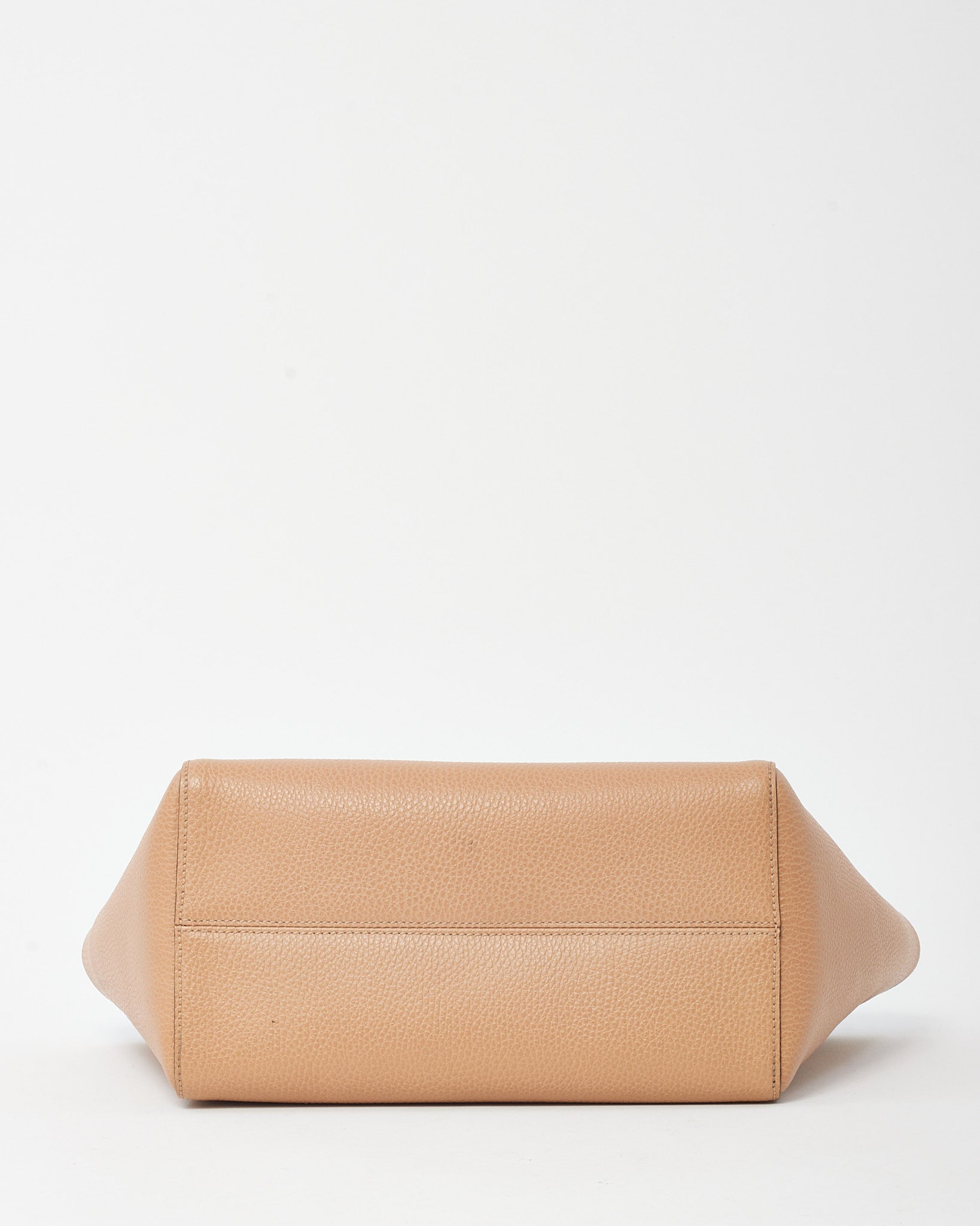 Beige with Blue Trim Pebbled Leather Medium Swing Tote