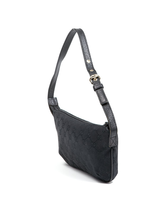 Black GG Supreme Canvas Adjustable Shoulder Boat Bag