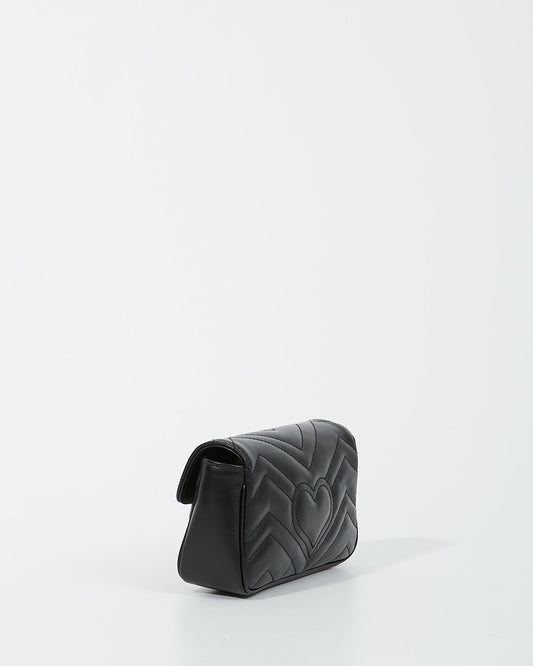 Black Chevron Leather GG Marmont Matelassé Super Mini Chain Bag