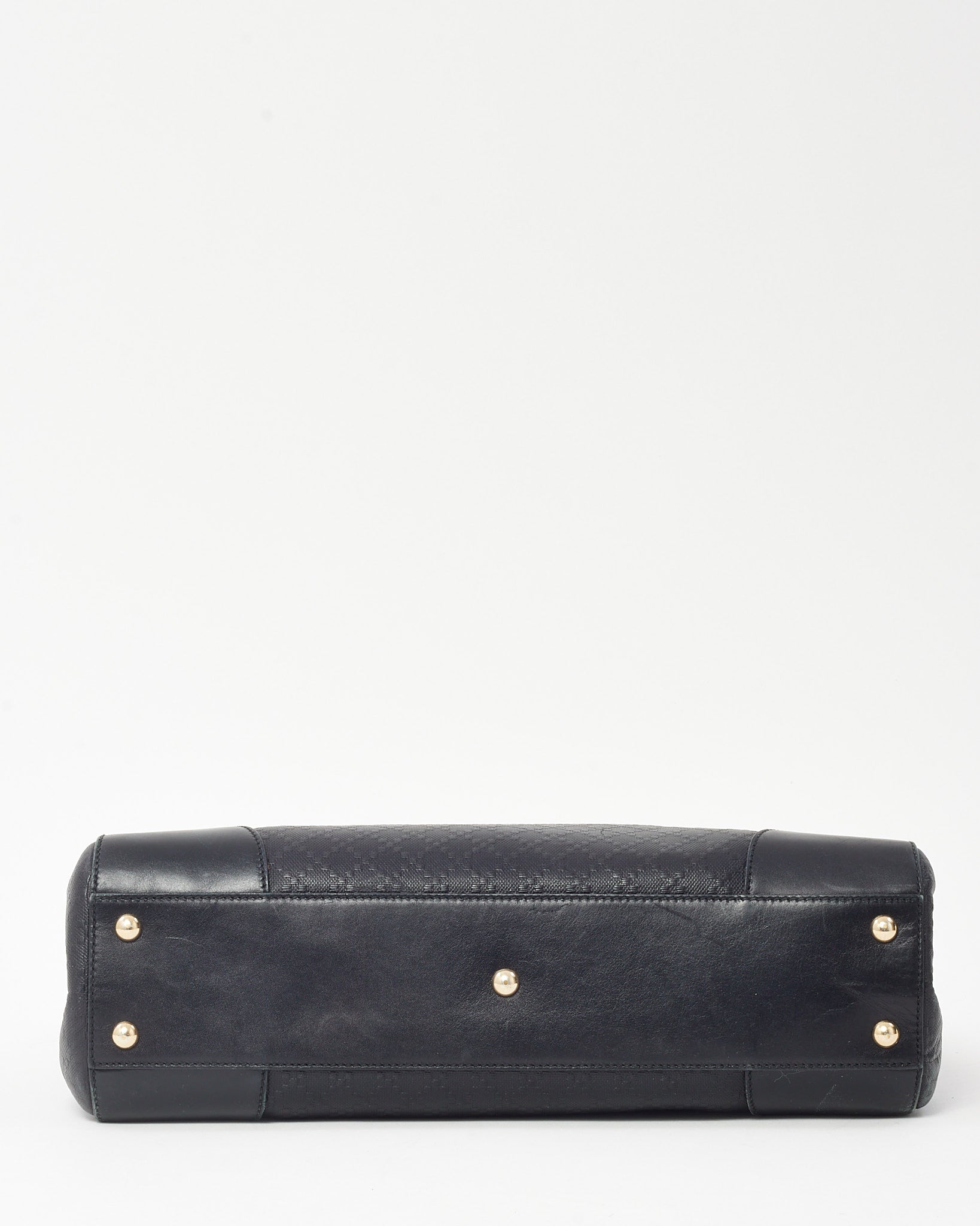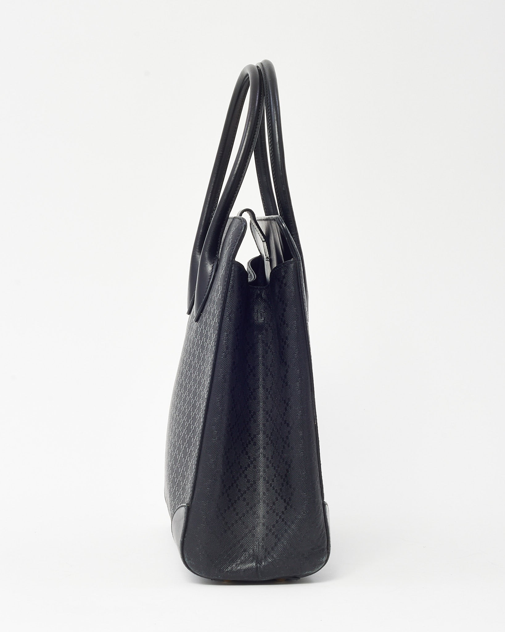 Elevate your everyday carry with this pre-loved authentic Gucci Top Handle Tote Bag, crafted in luxurious black Diamante-embossed leather. Featuring a structured silhouette with dual rolled top handles and subtle gold-tone hardware, this tote exudes timeless sophistication. The spacious interior includes multiple compartments and a secure zip closure, making it ideal for both work and weekend use. A refined blend of function and iconic Italian craftsmanship.