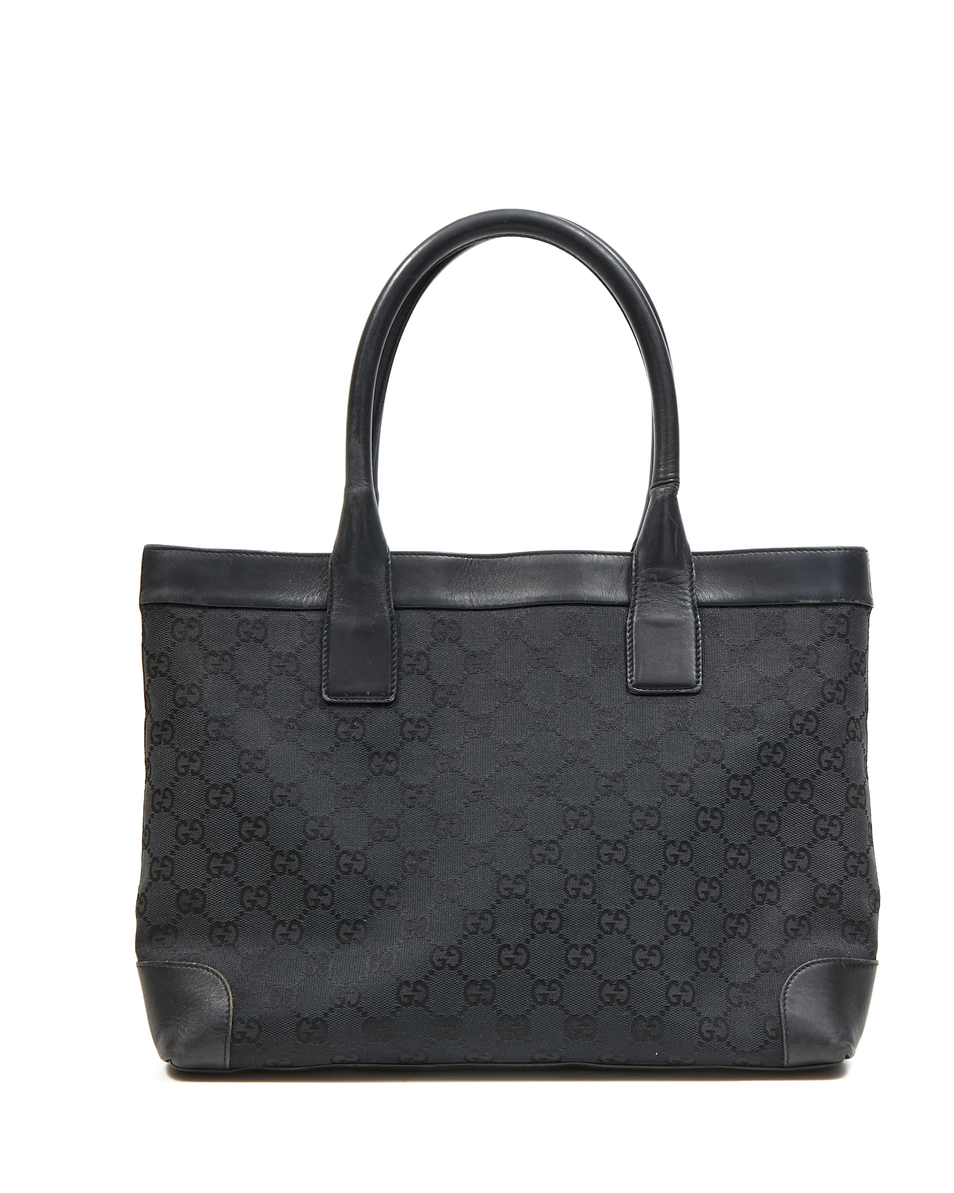 Black GG Supreme Monogram Canvas Leather Detail Tote