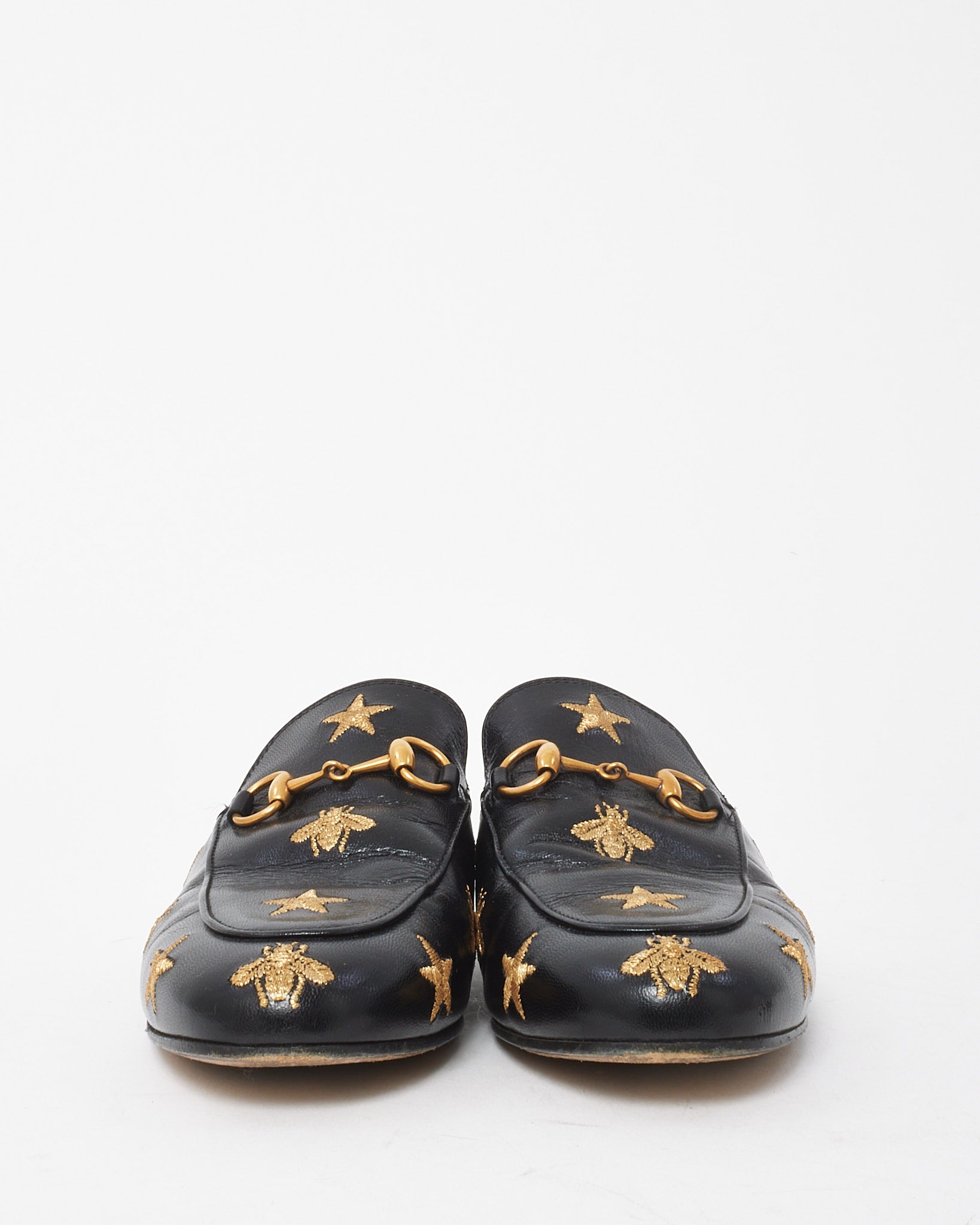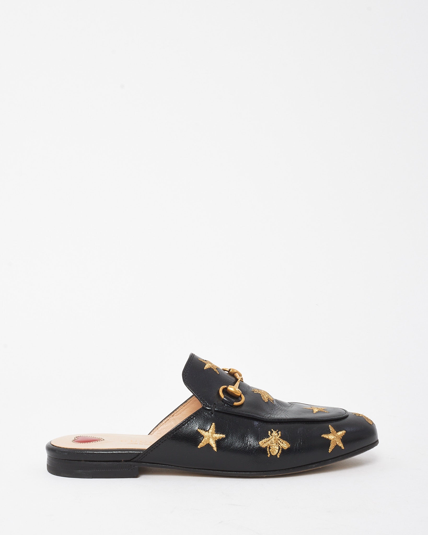 Black Goatskin Leather Bee and Star Embroidered Princetown Sipper Slides - 36
