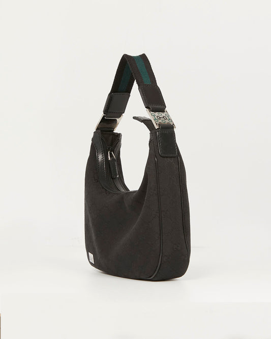 Black Guccissima Canvas Sherry Line Mini Hobo Shoulder Bag