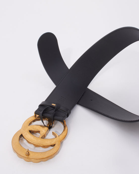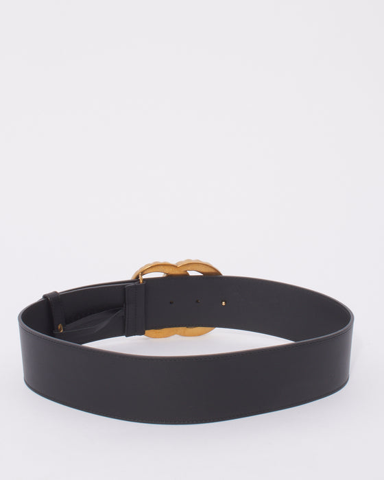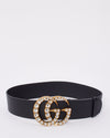 Black Leather Crystal GG Marmont Wide Belt - 75/30
