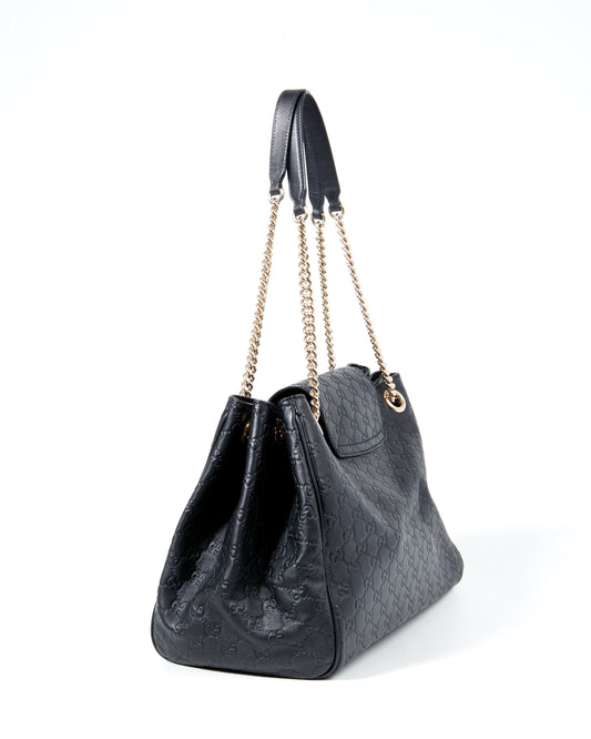 Black GG Guccissima Leather Large Emily Chain Shoulder Bag