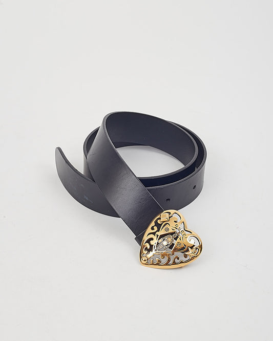 Black Leather Heart Shaped Hysteria Belt - 90/36