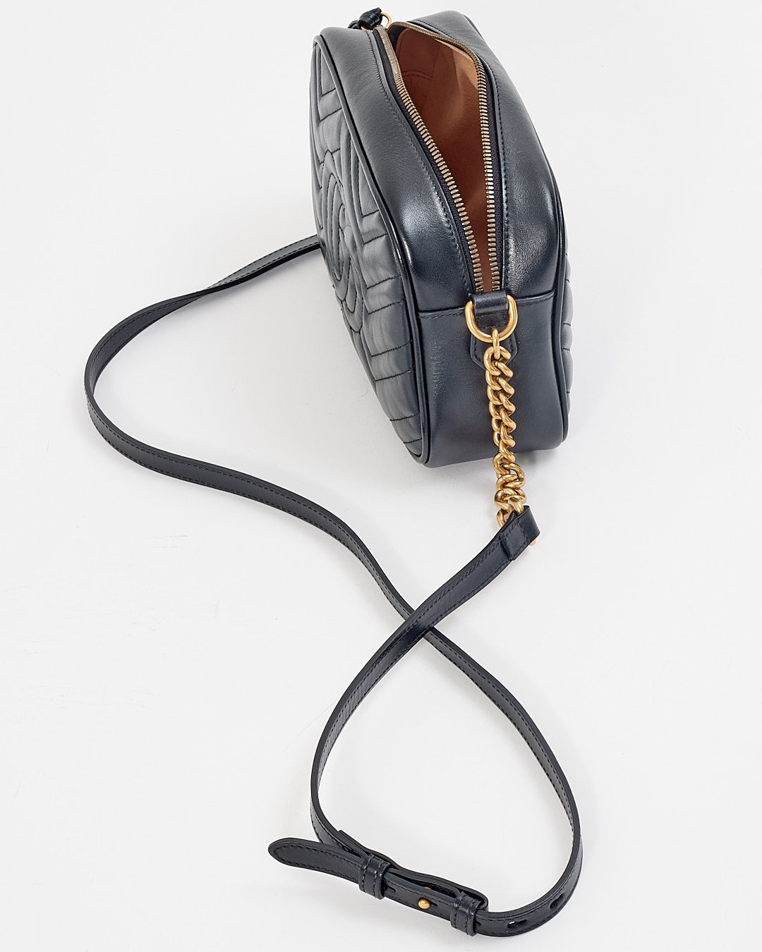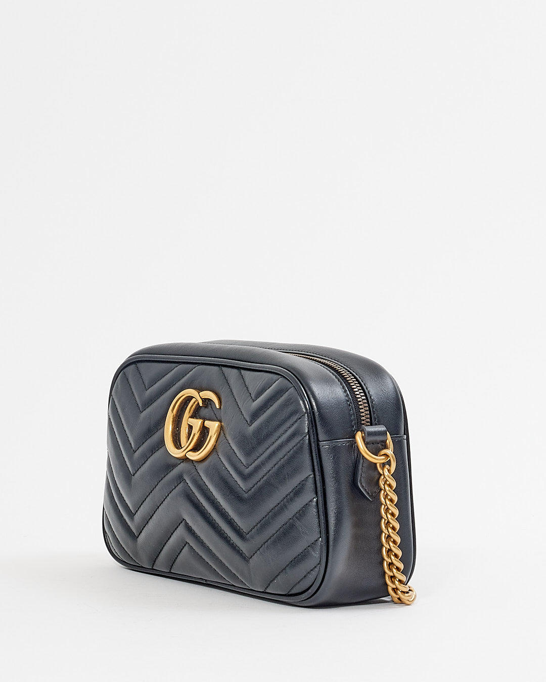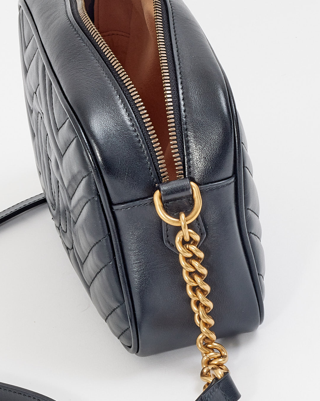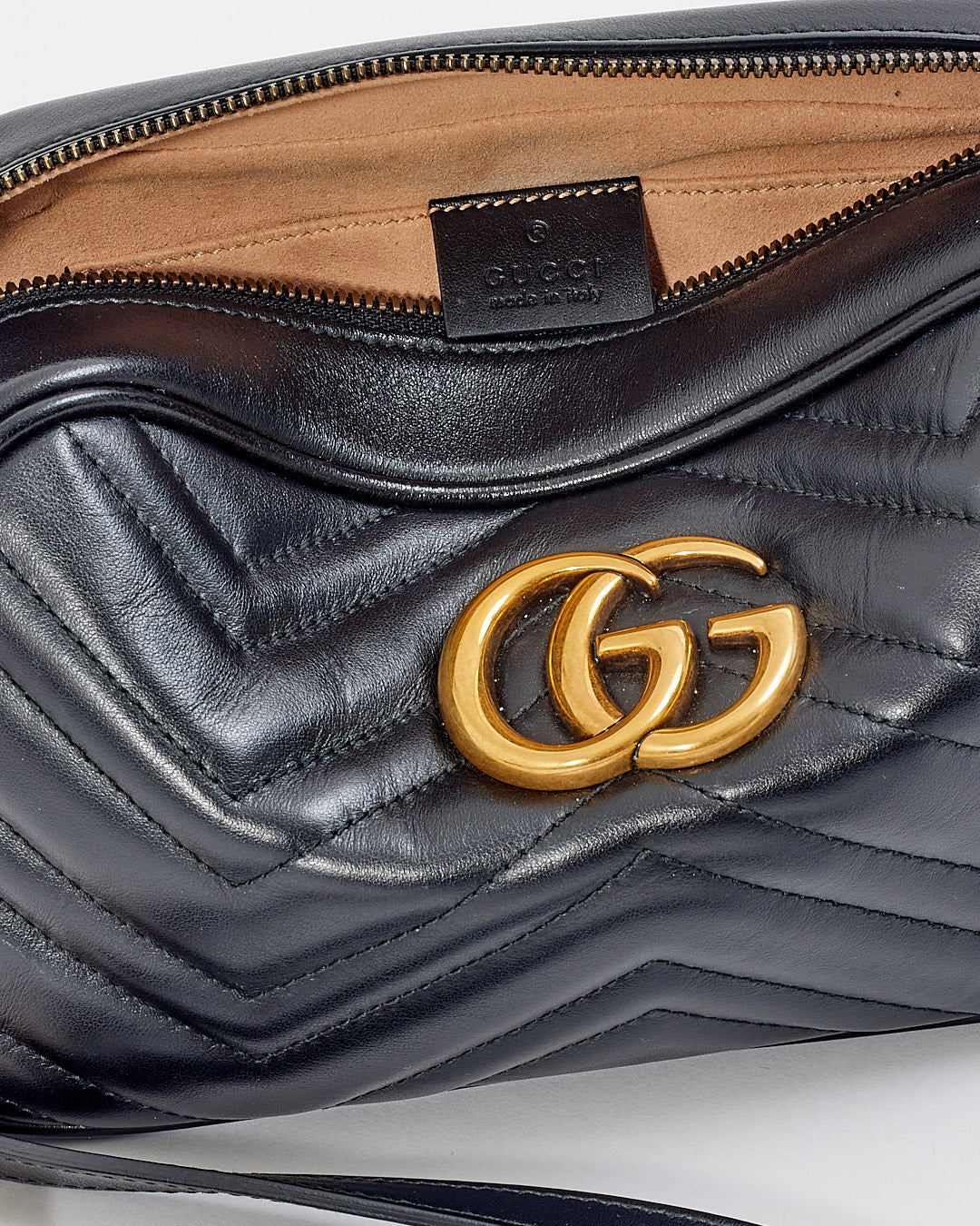 Black Leather Marmont GG Matelasse Camera Small Bag