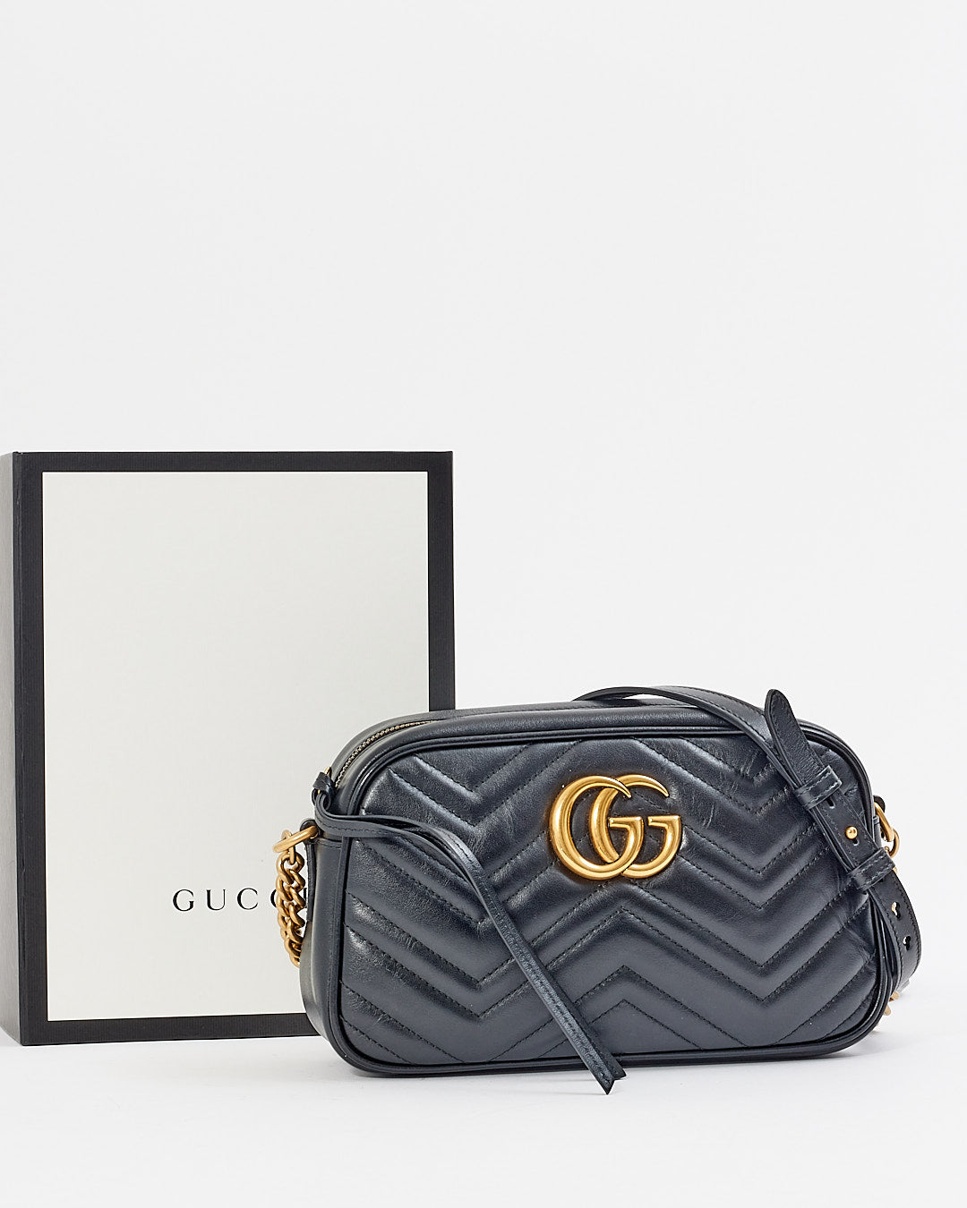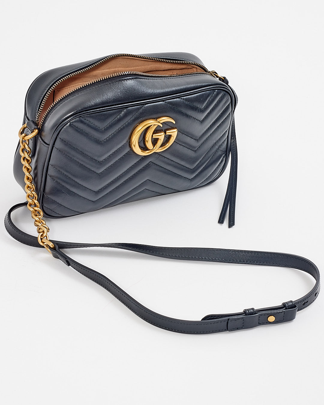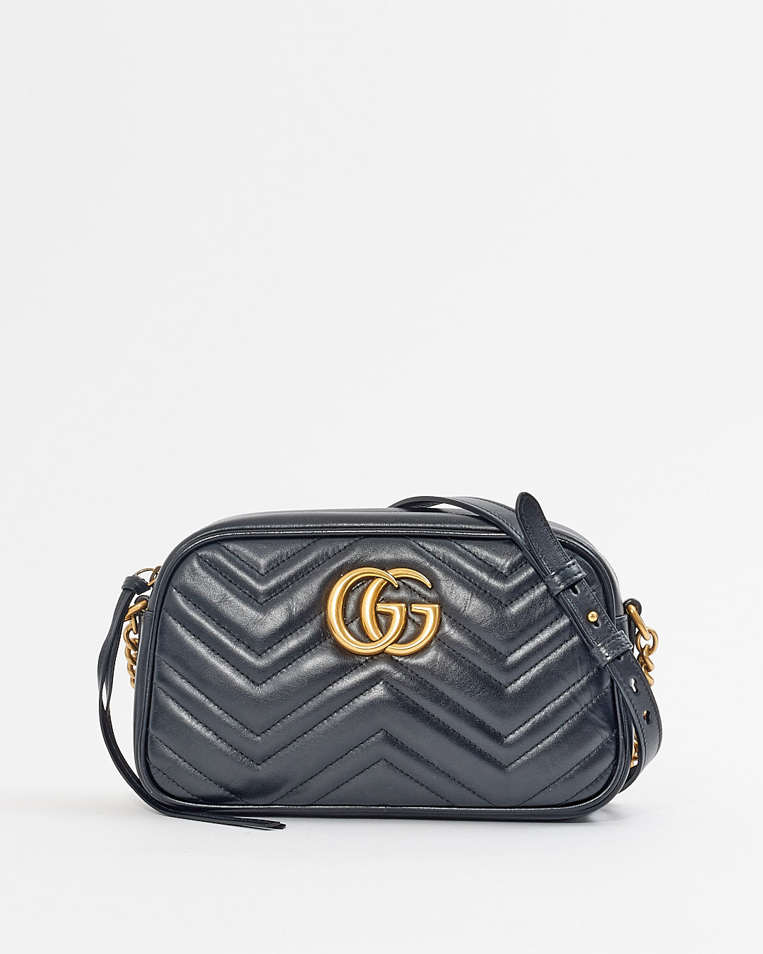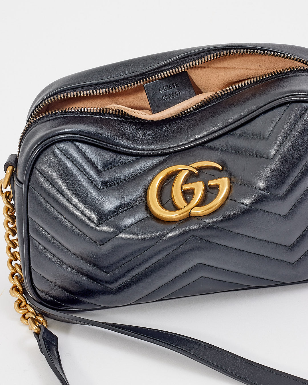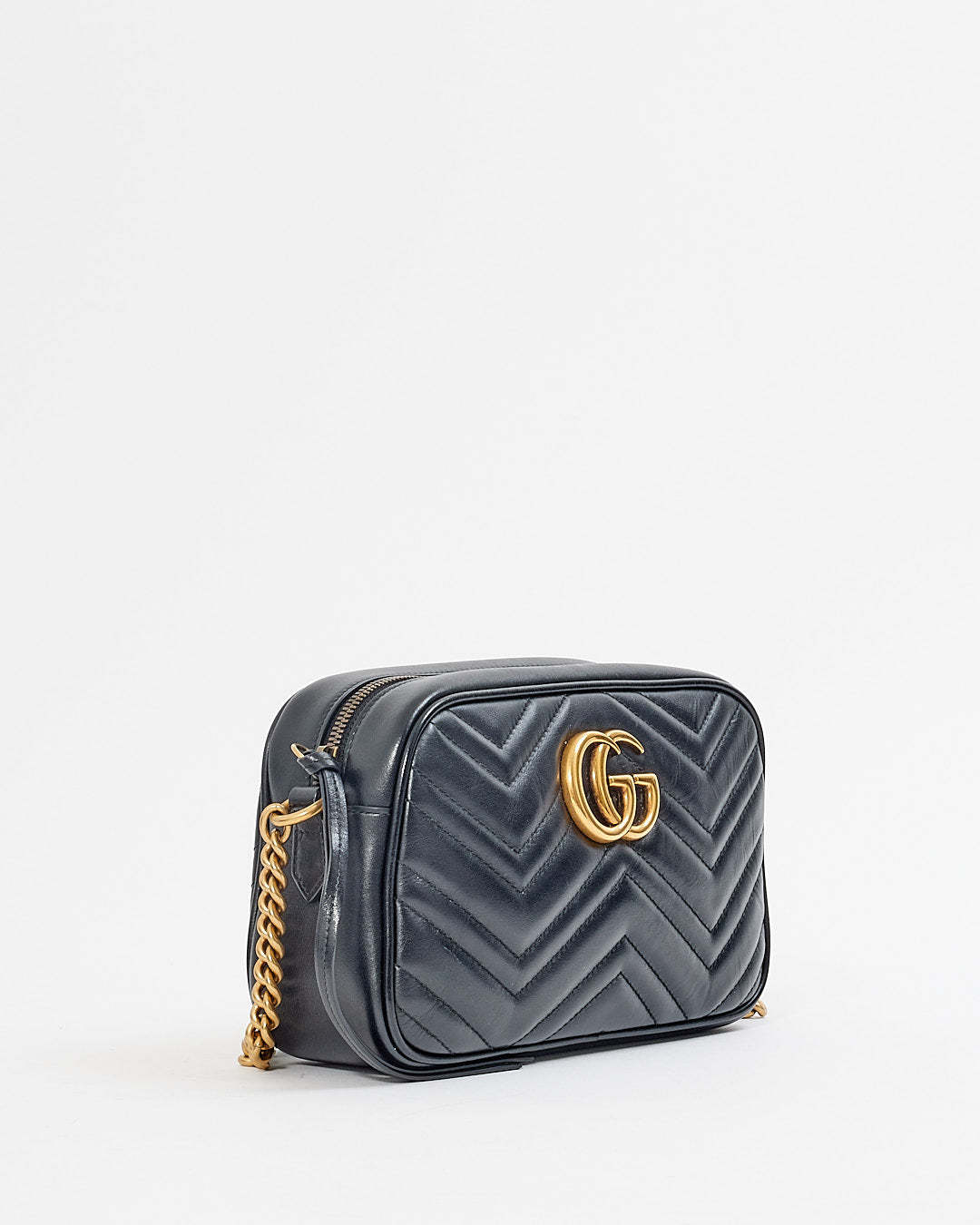 Black Leather Marmont GG Matelasse Camera Small Bag