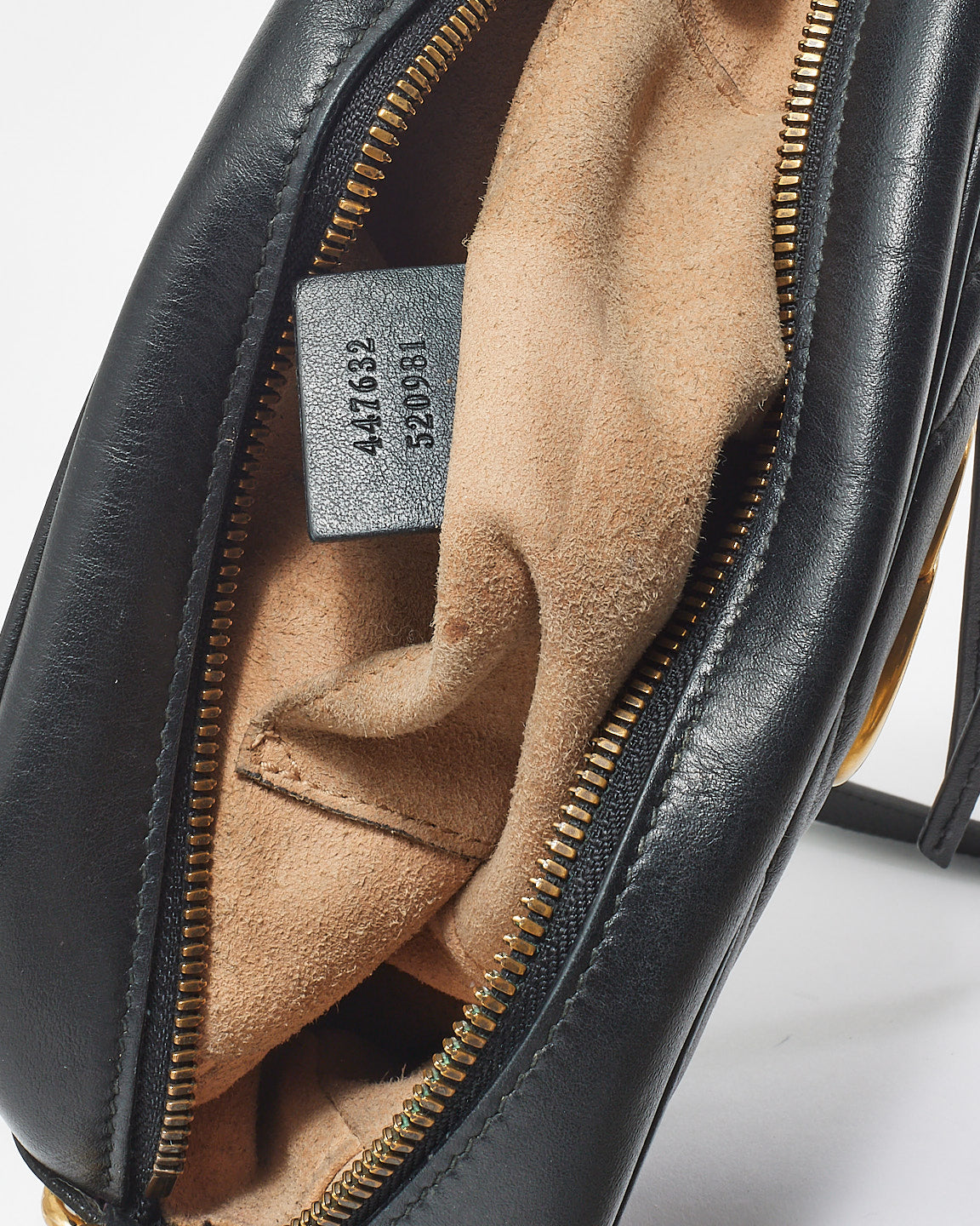 Explore Gucci's exquisite collection of handbags, featuring this certified pre-owned Black Leather Small Marmont Crossbody Bag. Embodying timeless elegance and modern sustainability, each piece, including favorites like this, is authenticated by Retyche. Discover sustainable luxury — shop our current treasures or find inspiration for your next coveted find.