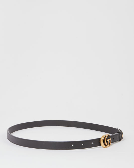 Black Leather Thin Double G Buckle Marmont Belt - 36/90