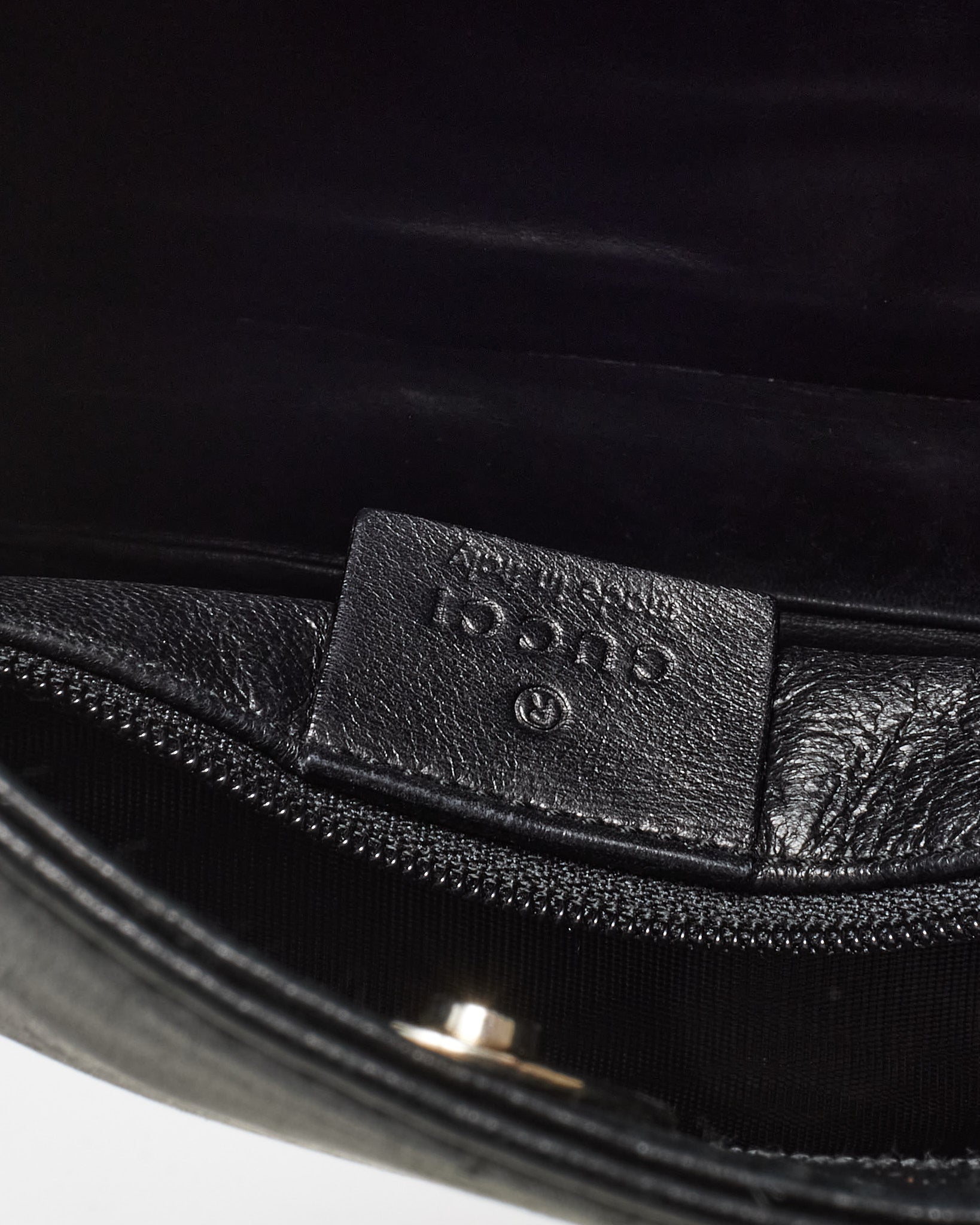 A sleek reflection of early 2000s sophistication, this pre-loved authentic Gucci Shoulder Bag from the Tom Ford era is a coveted vintage piece with enduring appeal. Crafted in smooth black leather, the bag features structured lines, sculptural silver-tone hardware, and a minimalist silhouette emblematic of Ford’s directional design influence. The compact size and top zip closure make it ideal for both everyday chic and elevated evening styling. A rare and timeless investment from one of fashion’s most iconic creative periods.