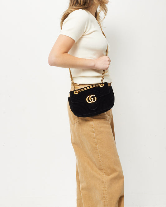 Black Matelassé Velvet Small GG Marmont Shoulder Bag