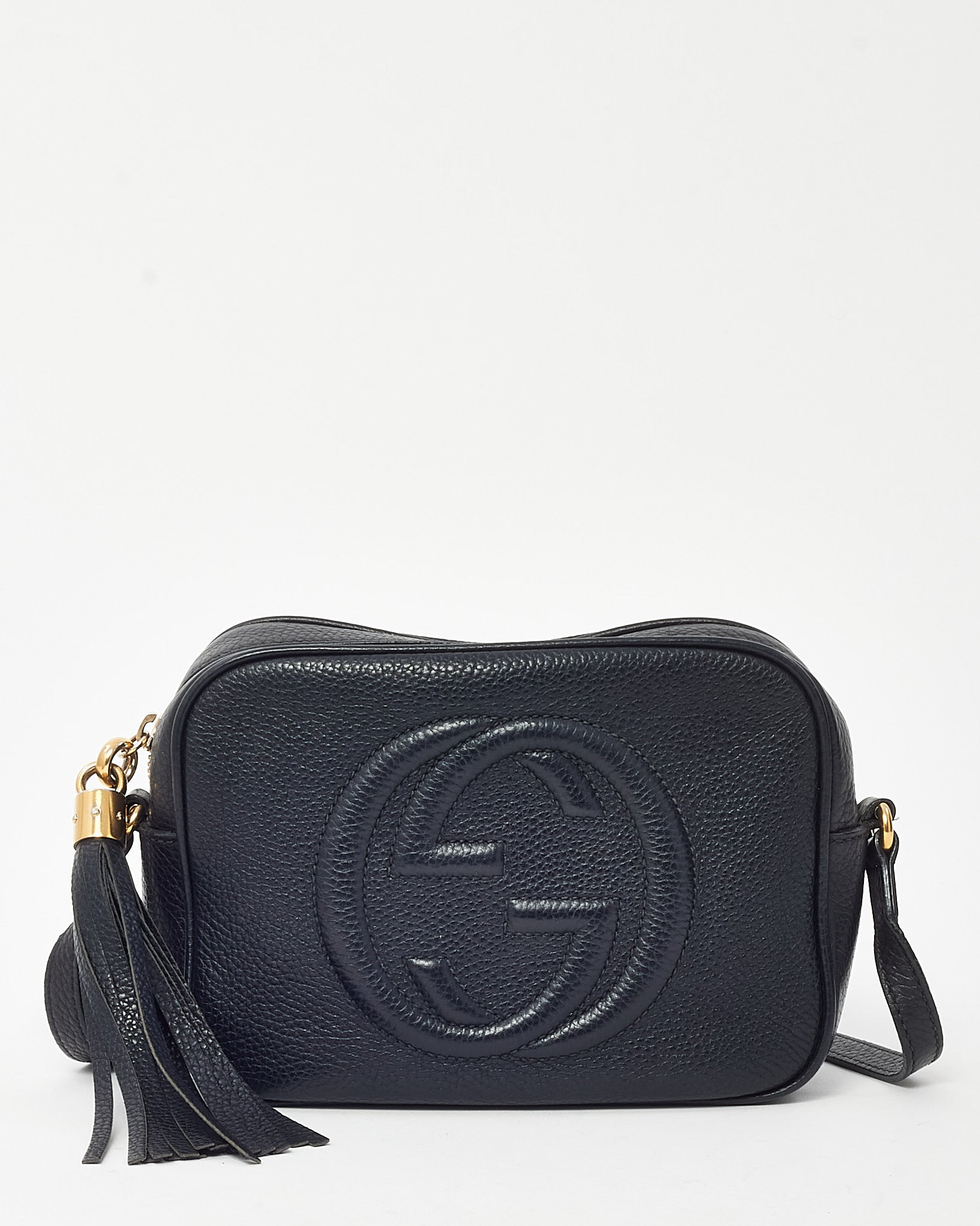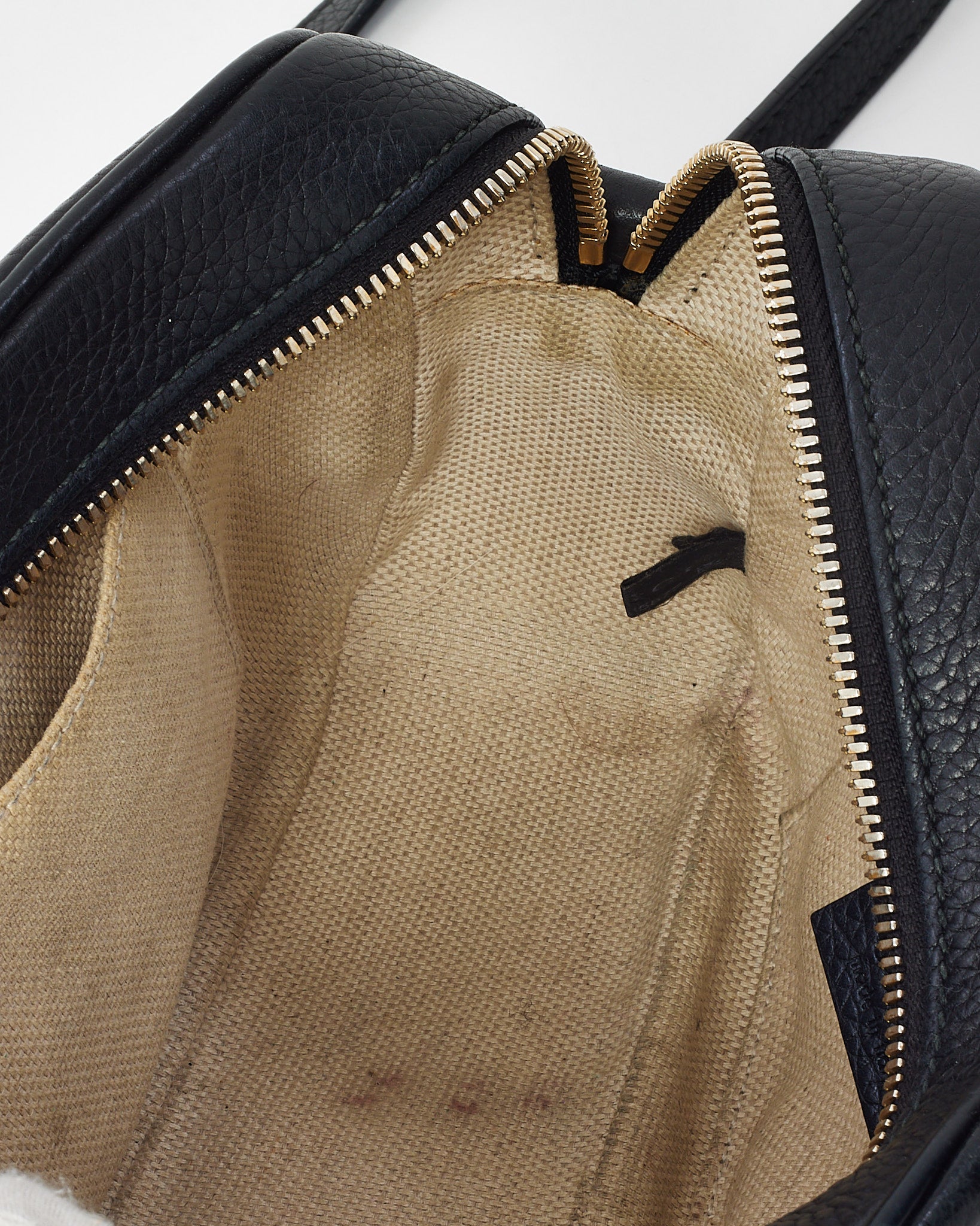 Black Pebbled Calfskin Leather GG Soho Disco Crossbody Bag