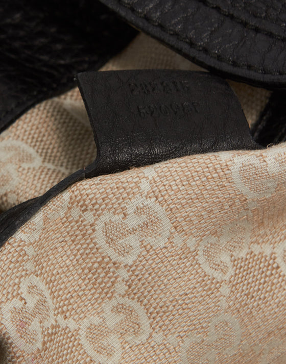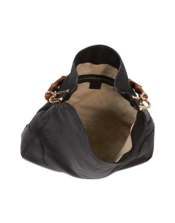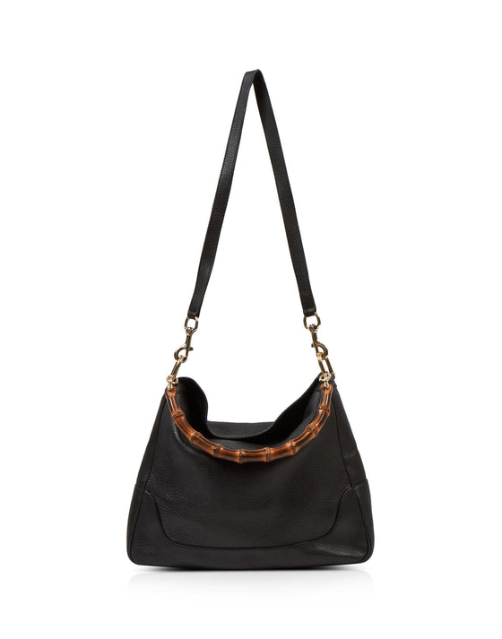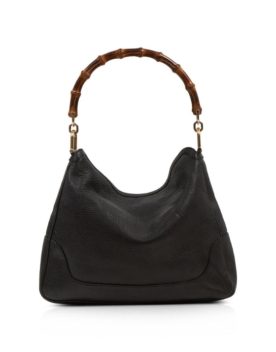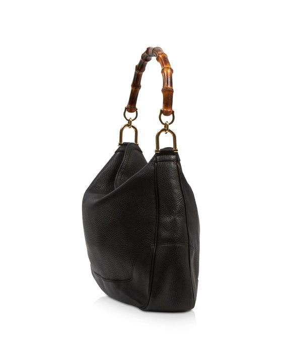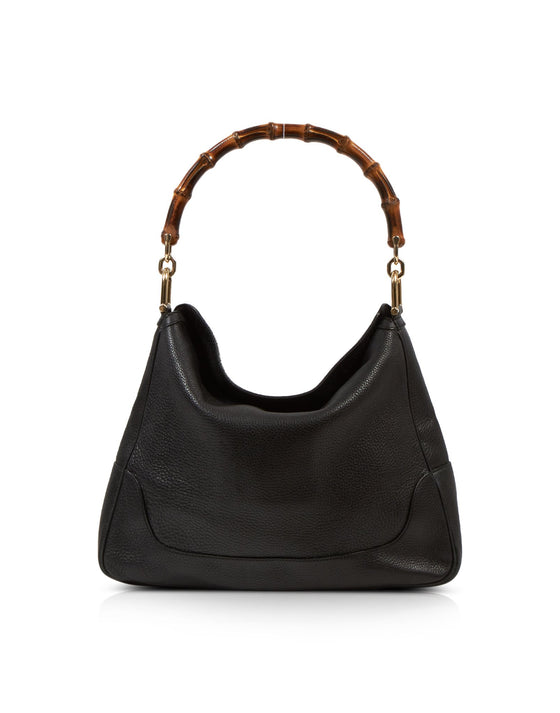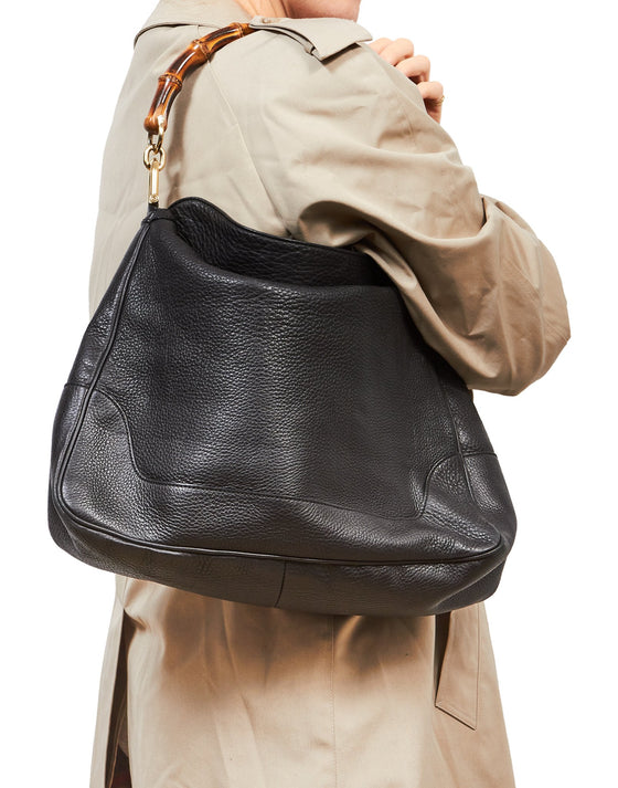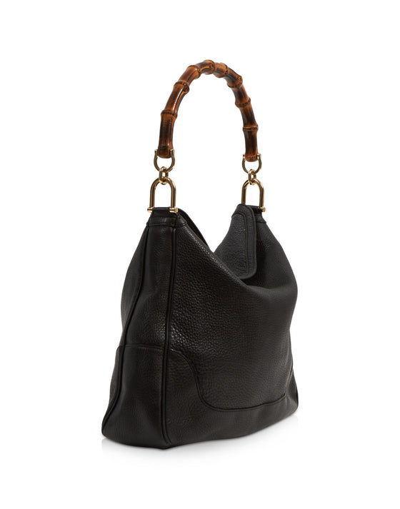 Black Pebbled Leather Diana Bamboo Shoulder Bag