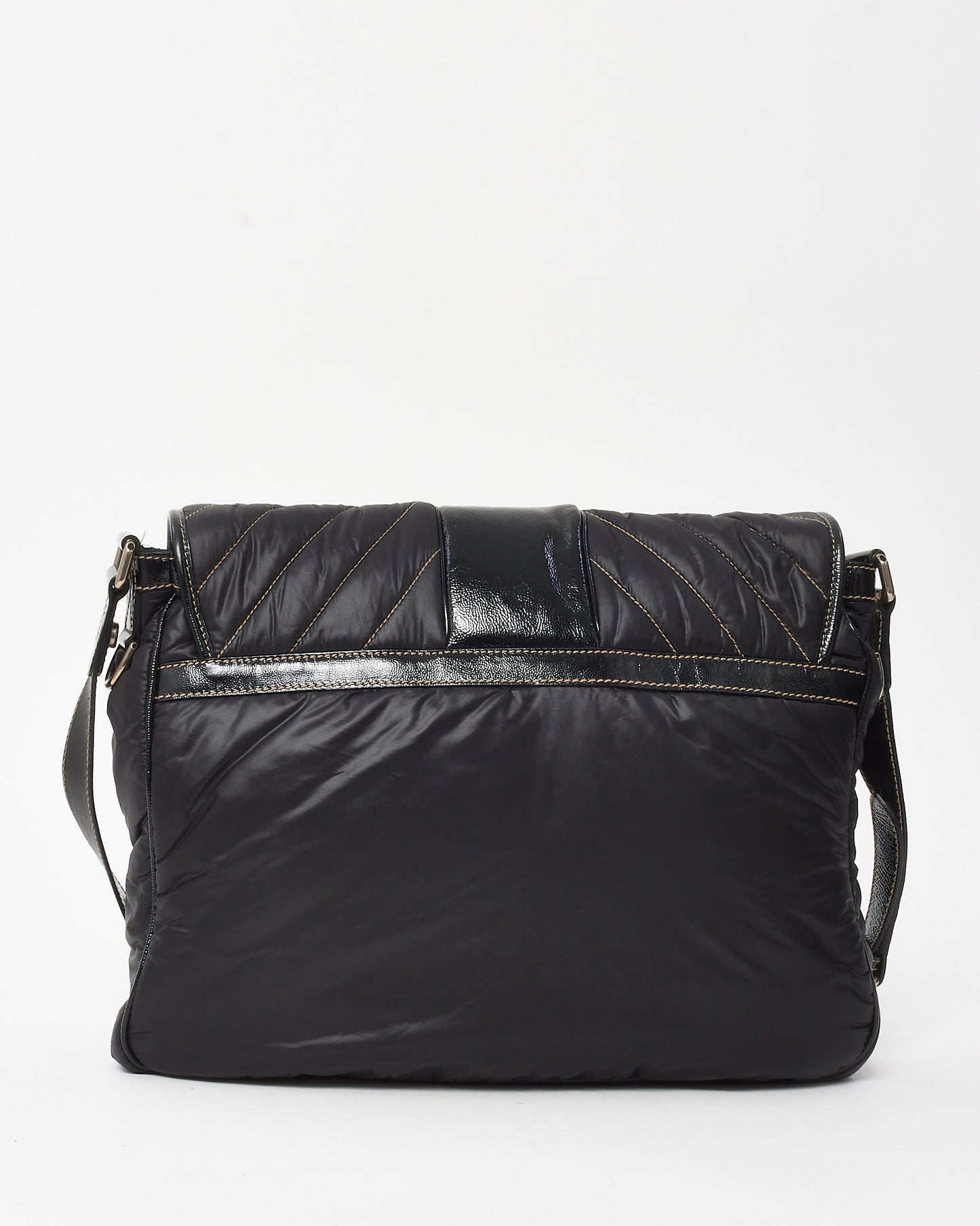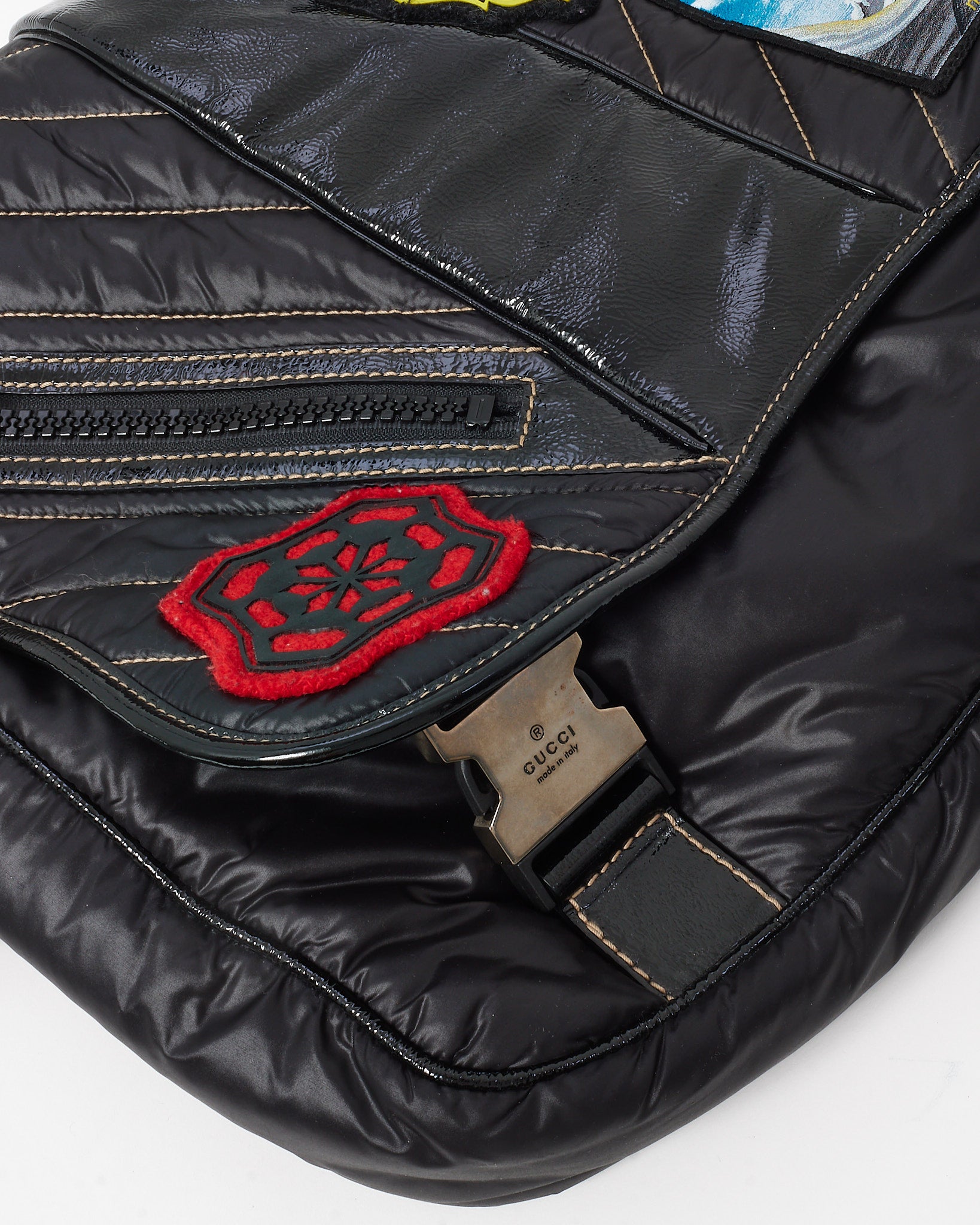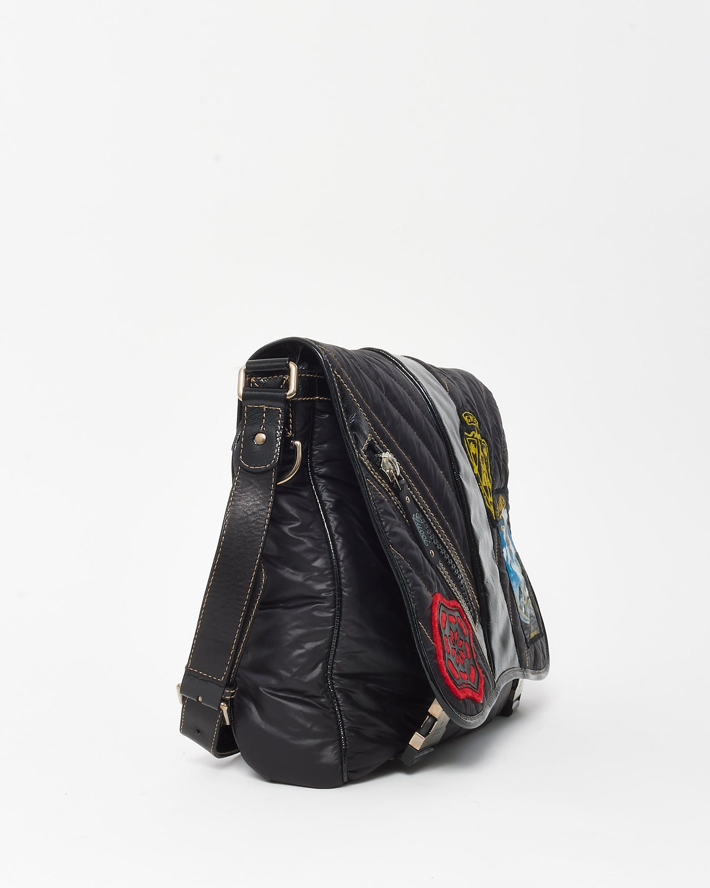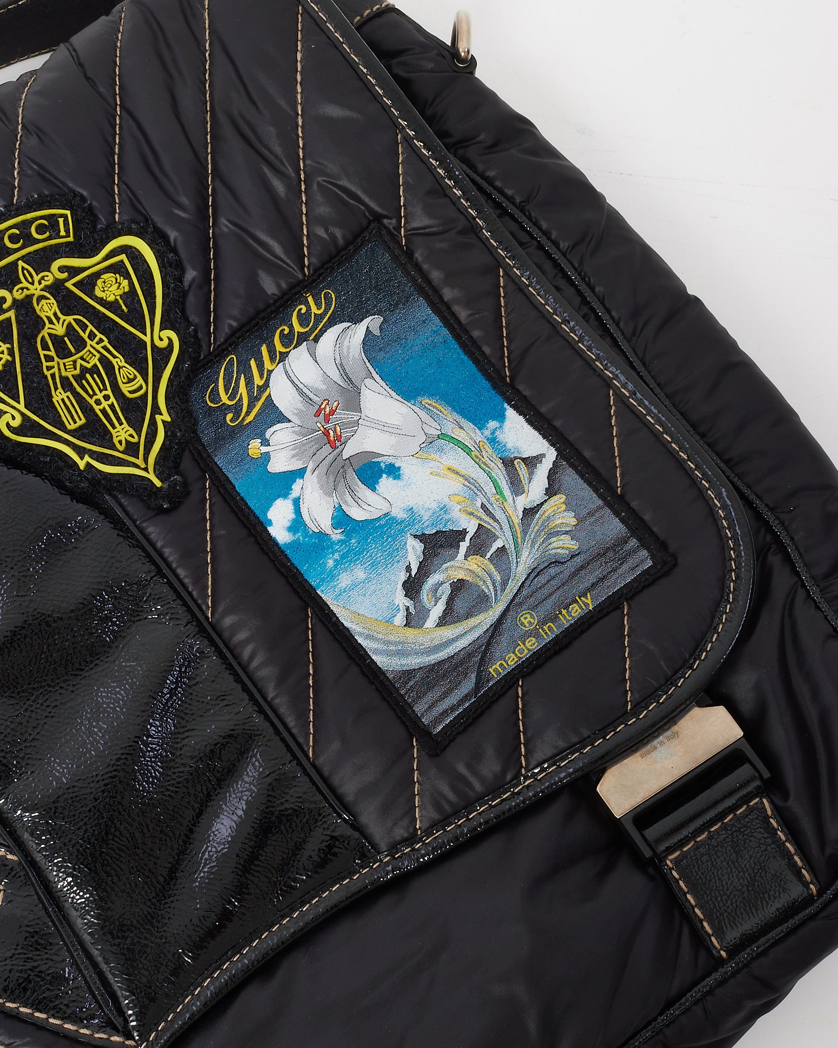 Edgy and elevated, this pre-loved authentic Gucci Black Quilted Coated Logo Patches Messenger Bag brings a modern twist to a classic silhouette. Crafted from quilted coated canvas with a subtle sheen, it’s adorned with bold logo patches that showcase Gucci’s playful, street-style aesthetic.