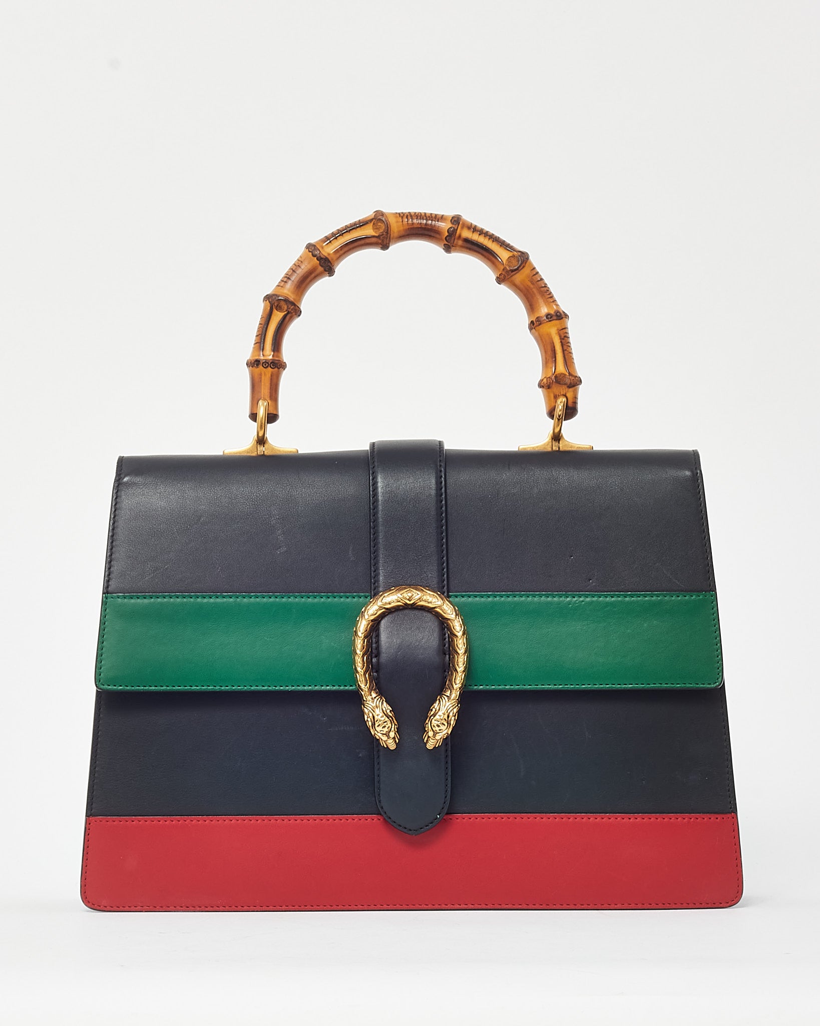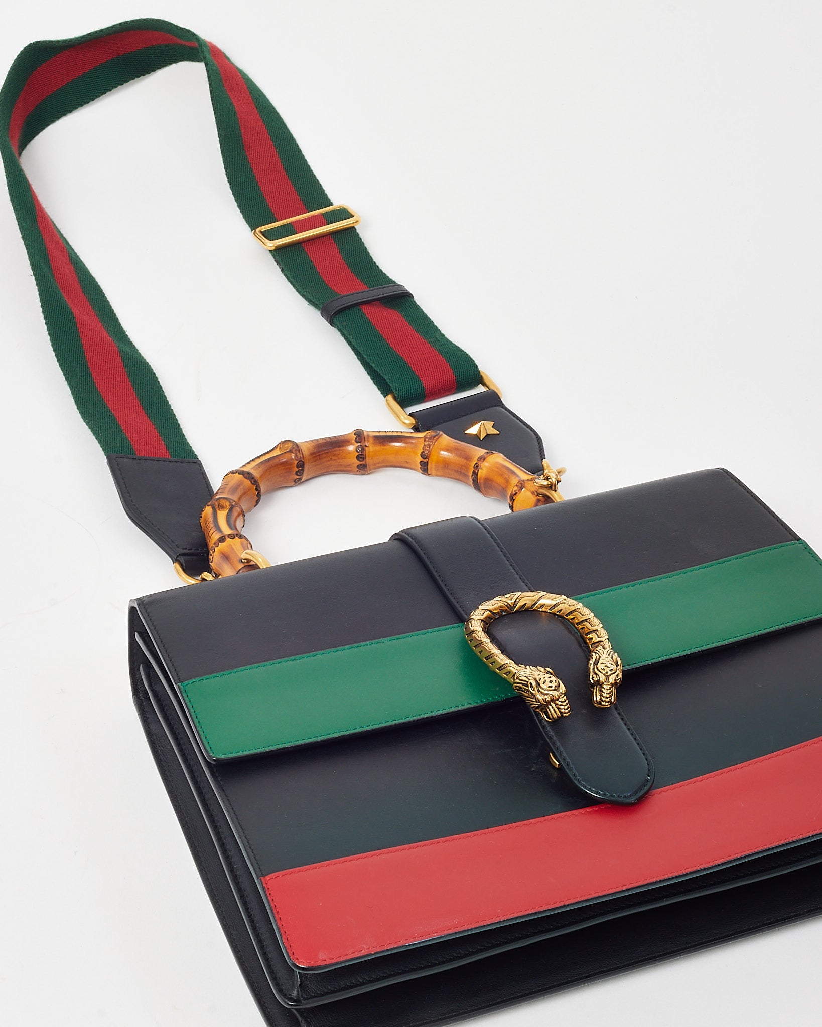 Black/Red/Green Web Calfskin Leather Large Dionysus Bamboo Top Handle Bag