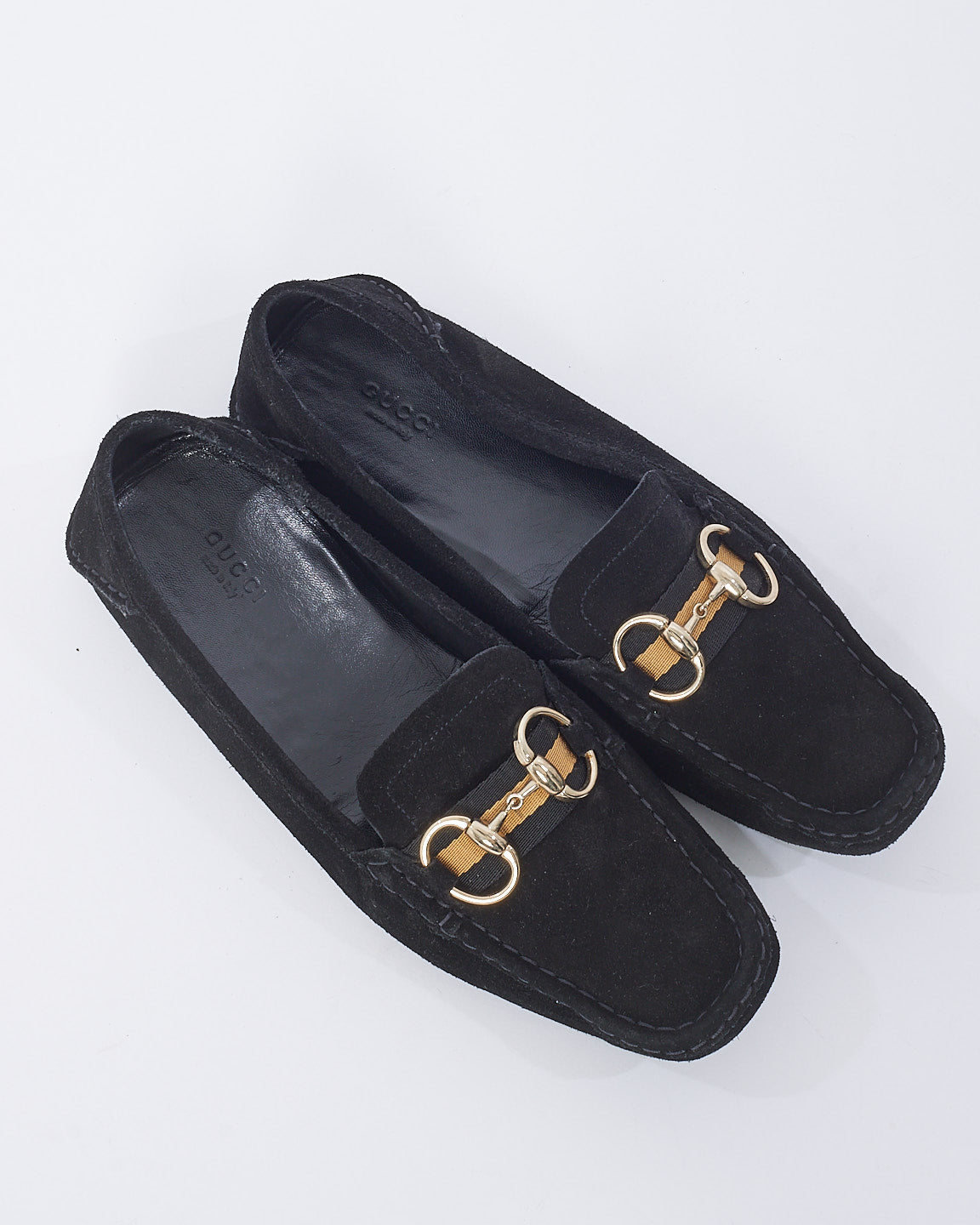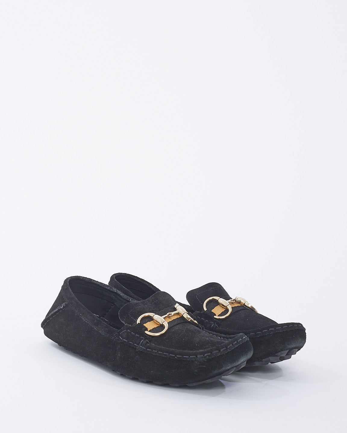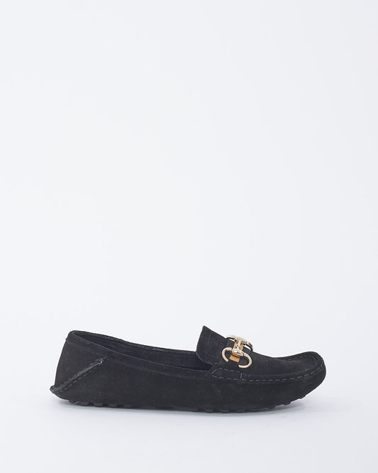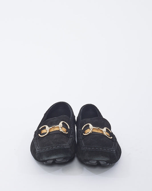 Black Suede Horsebit Moccasin Loafers - 10