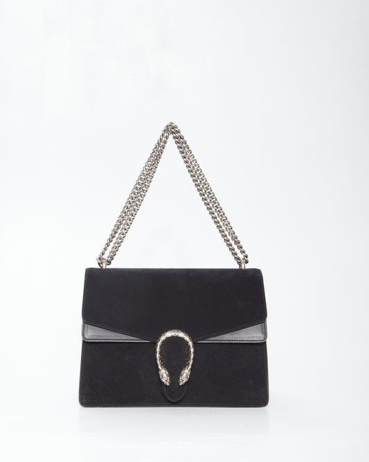 Black Suede Medium Dionysus Chain Shoulder Bag
