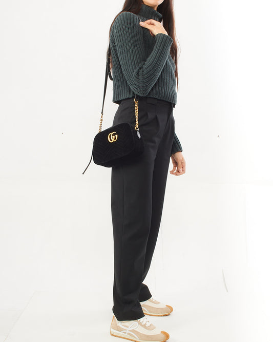 Black Velvet GG Marmont Matelassé Small Crossbody Bag