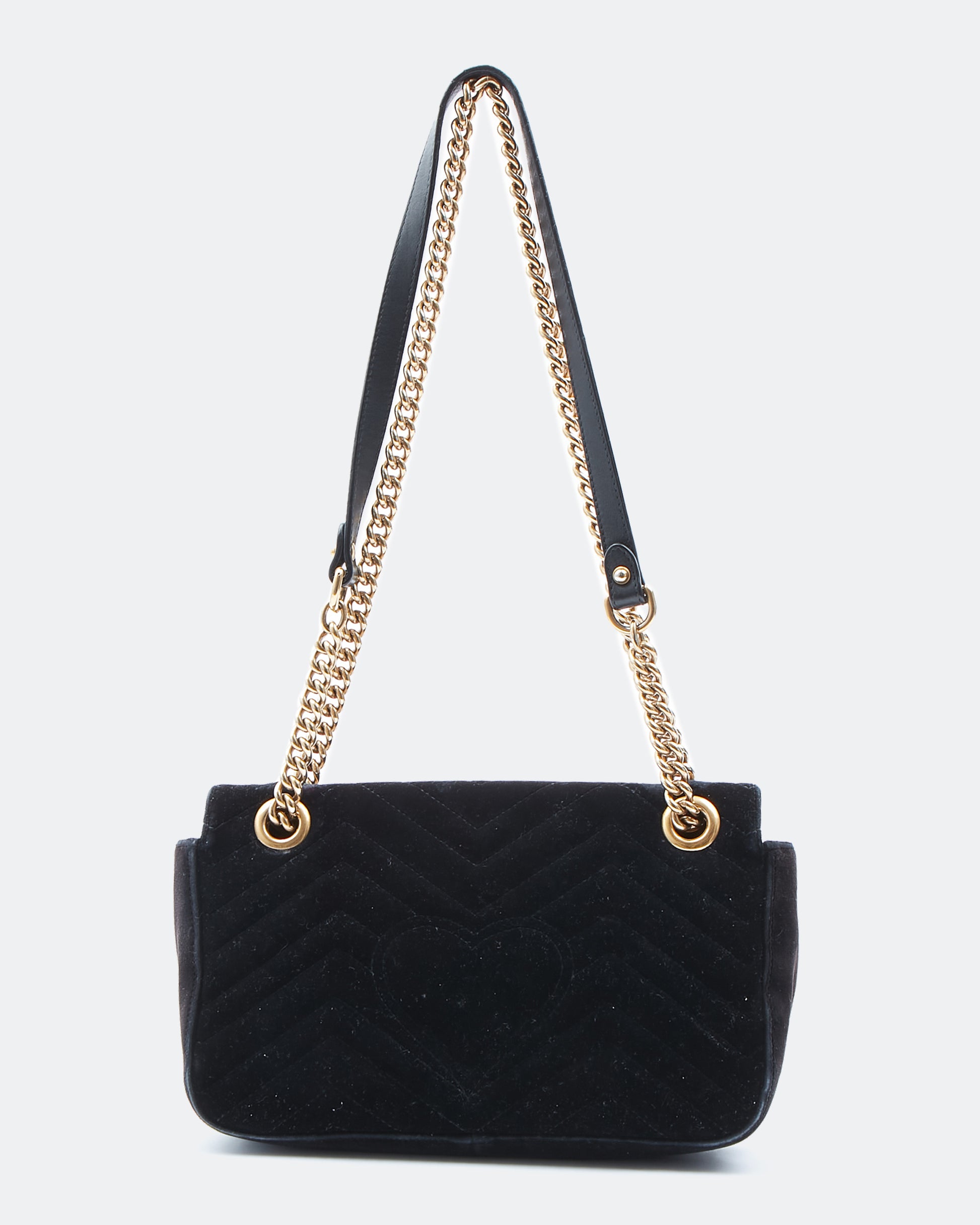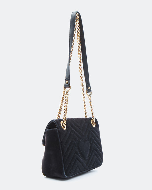 Black Velvet Matelasse Marmont GG Medium Chain Bag