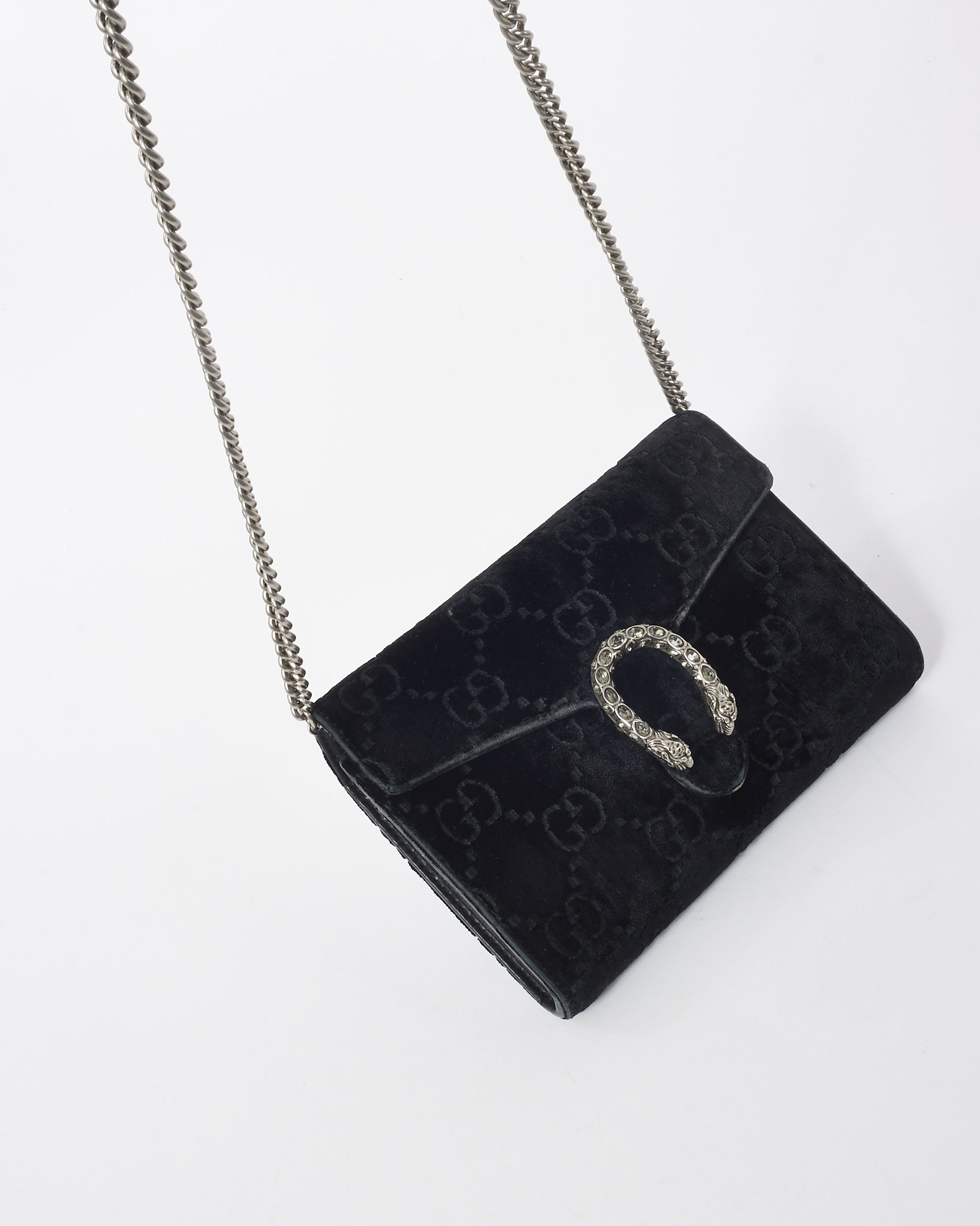 Black Velvet Monogram GG Crystal Dionysus Wallet On Chain