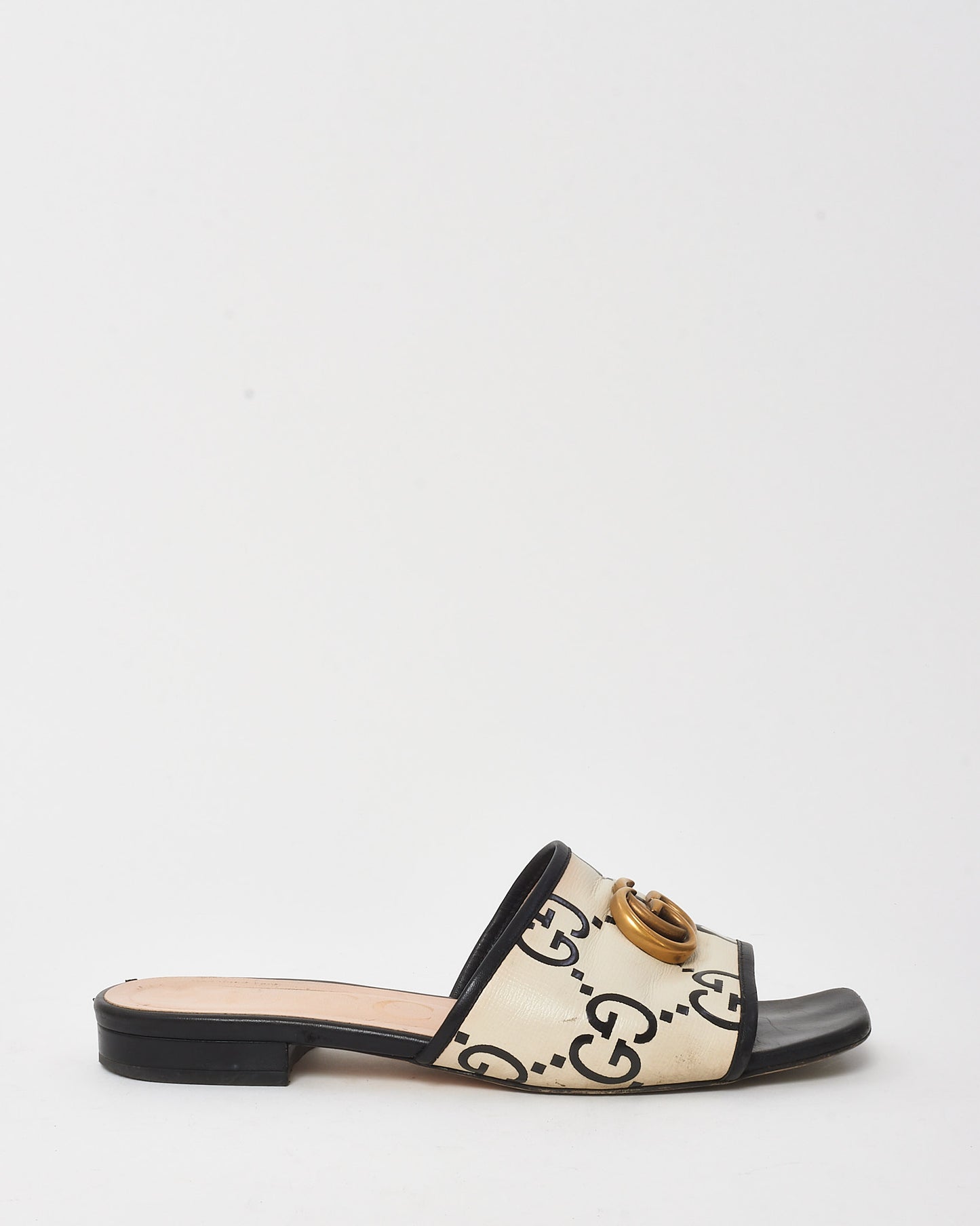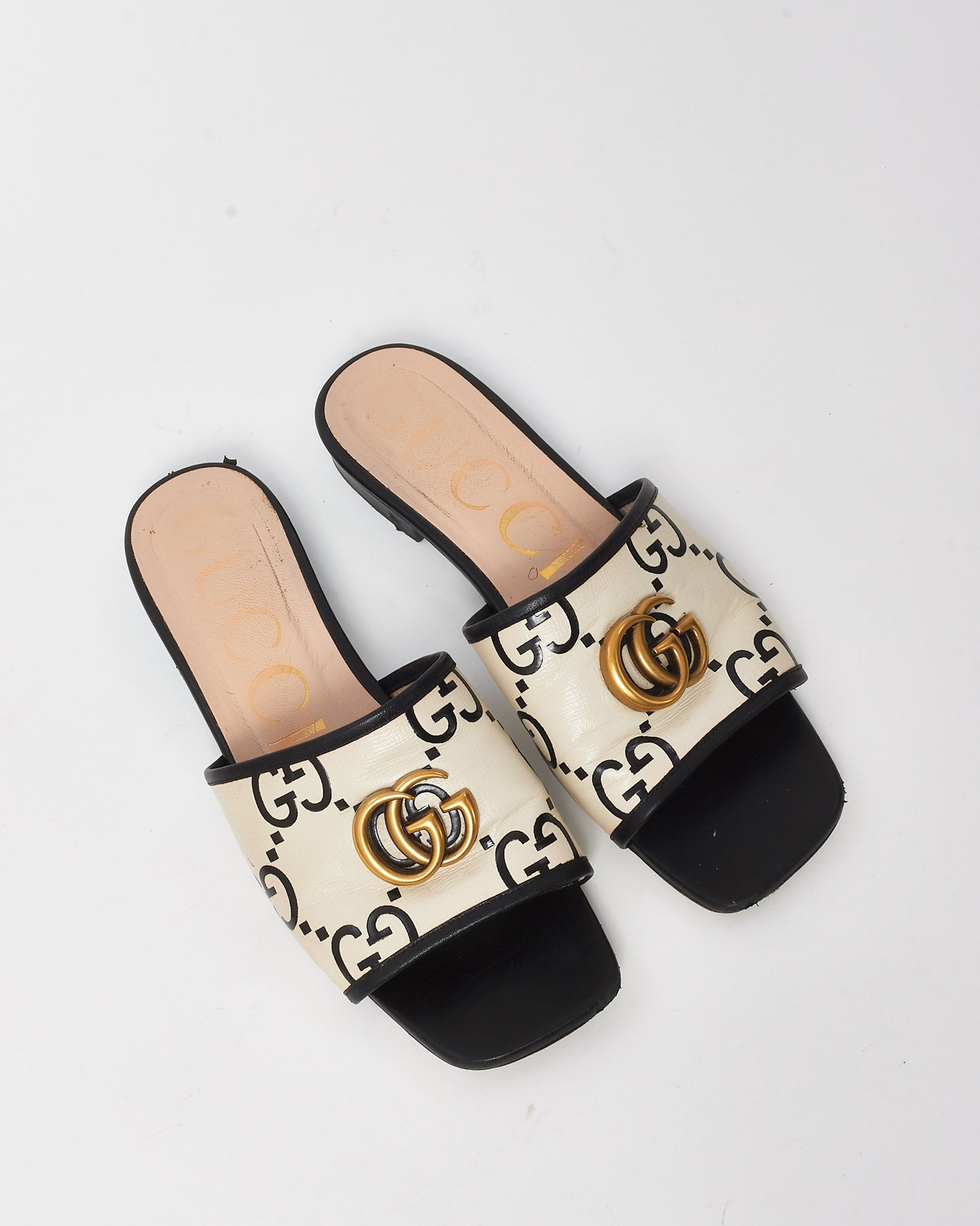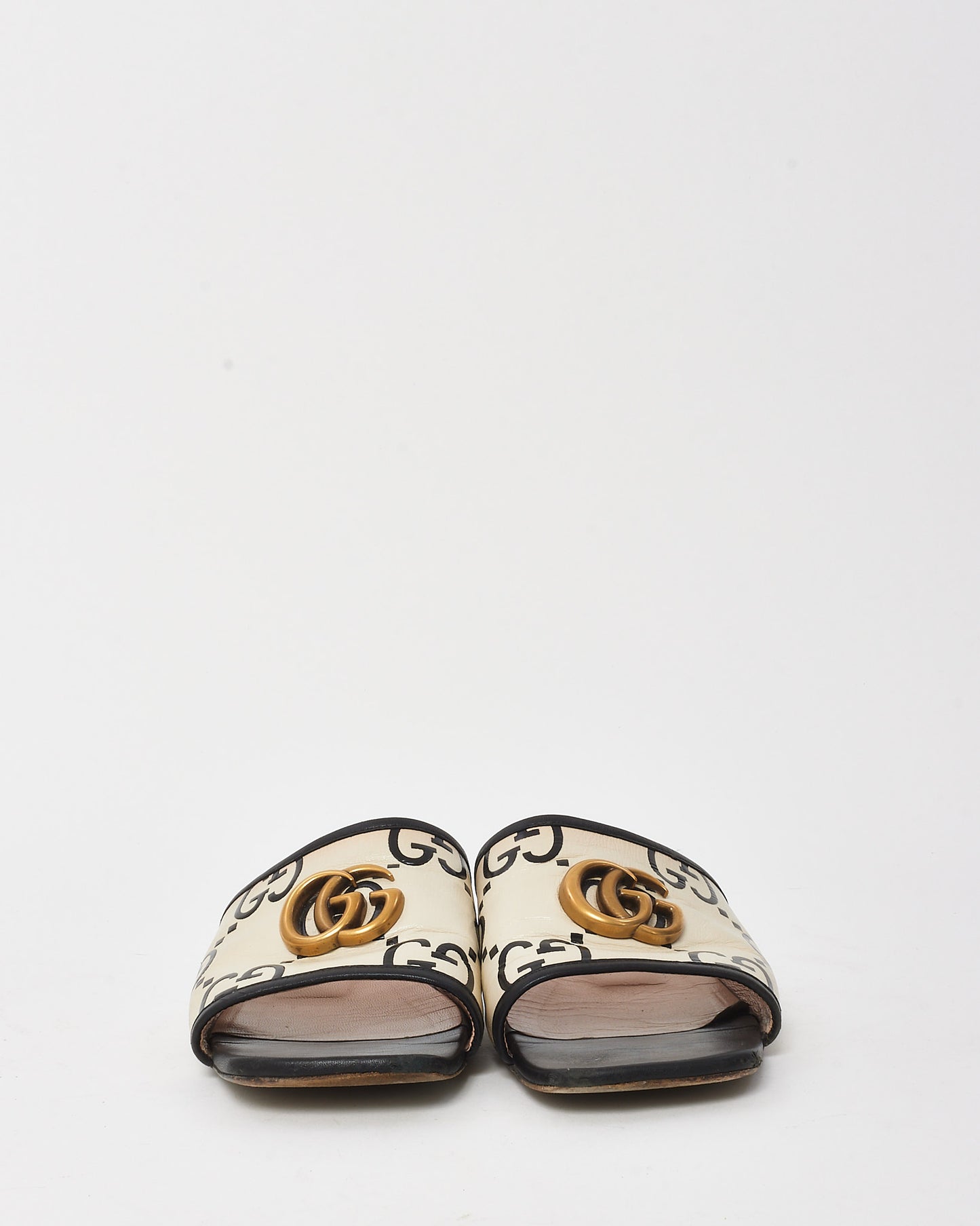 Black & White Leather GG Monogram Marmont Jolie Sandals - 37.5