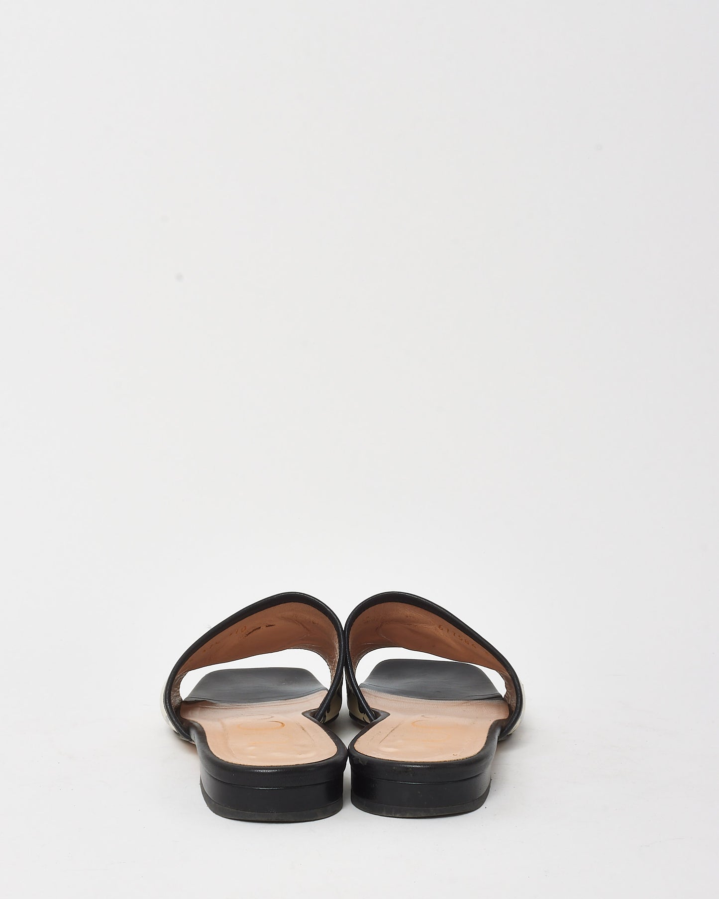 These pre-loved authentic Gucci Black & White Leather GG Monogram Marmont Jolie Sandals – Size 37.5 blend retro-inspired charm with contemporary sophistication. Crafted from smooth black and white leather, they feature the signature GG Marmont logo across the vamp, a flat block heel for comfortable height, and an open-toe silhouette. A versatile statement sandal that elevates both daytime and evening looks.