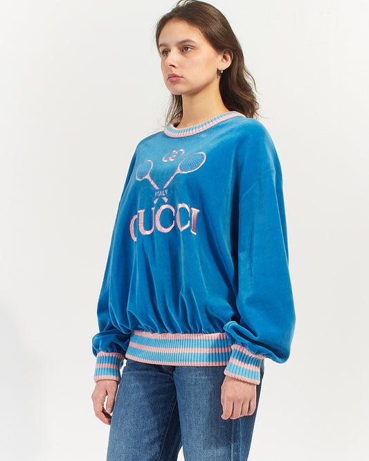 Blue/Pink Velvet Tennis Sweatshirt - S