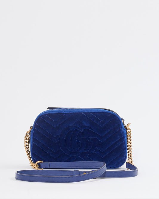 Blue Velvet GG Marmont Matelasse Chevron Small Camera Bag