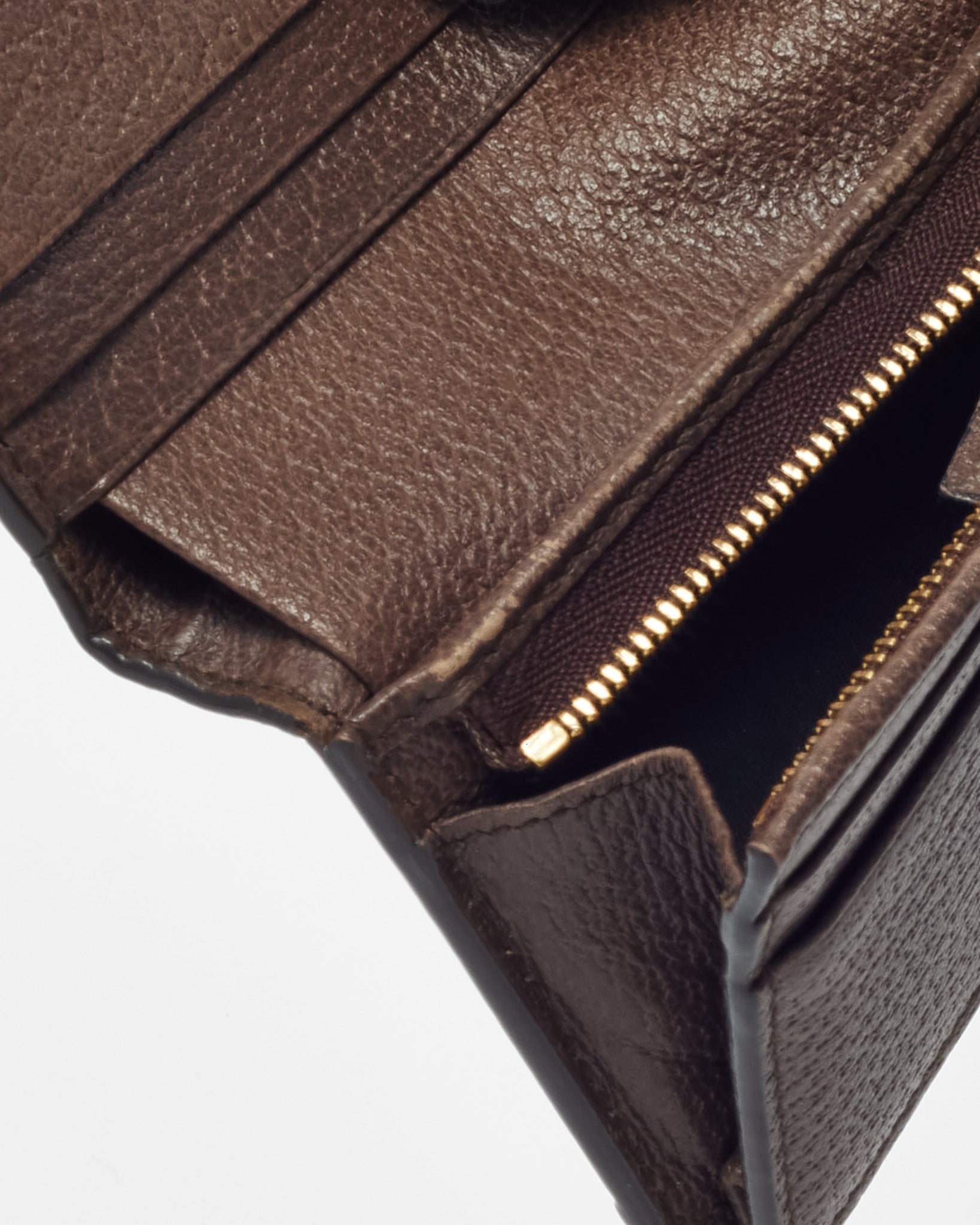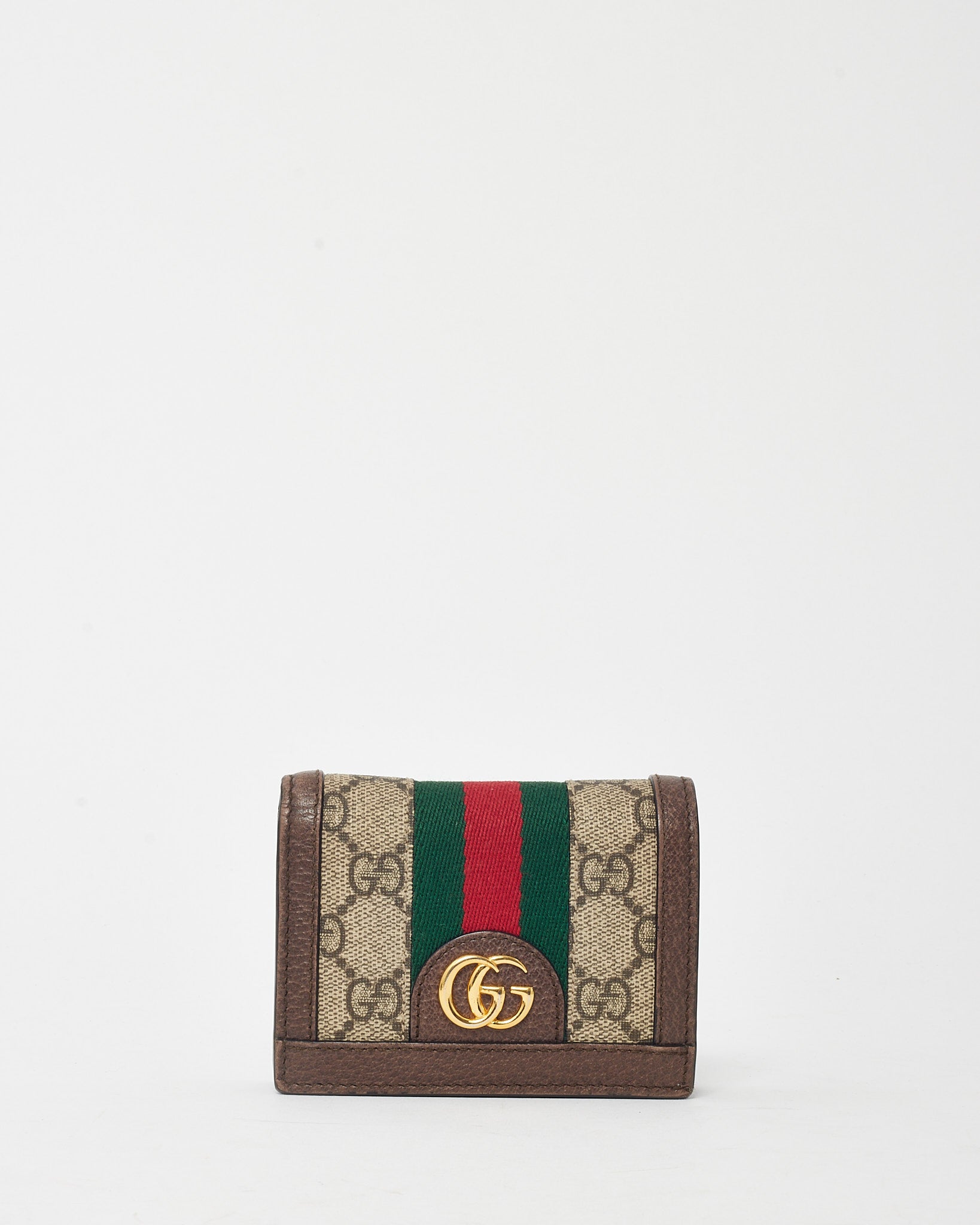 Brown and Beige GG Monogram Supreme Canvas Ophidia Card Case Wallet