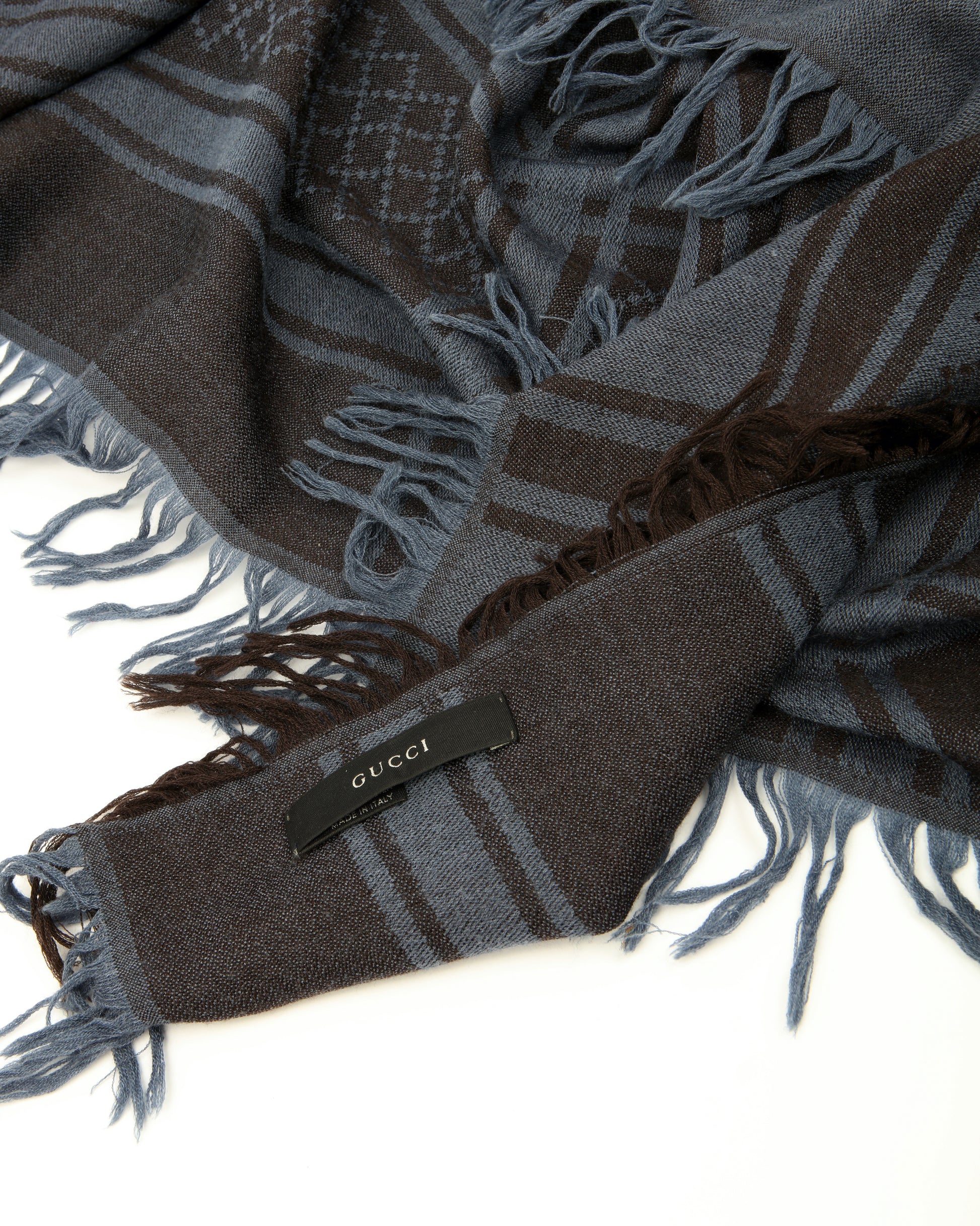 Brown/Blue GG Logo Fringe Wool/Silk Scarf