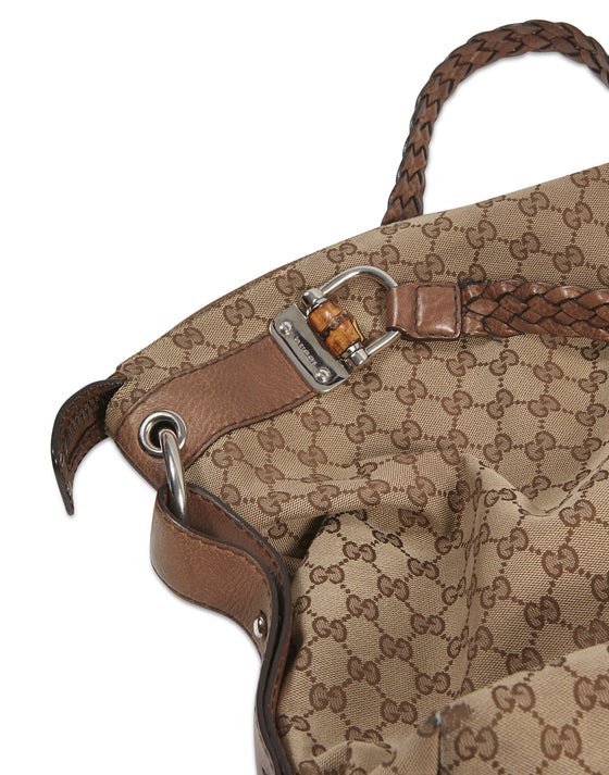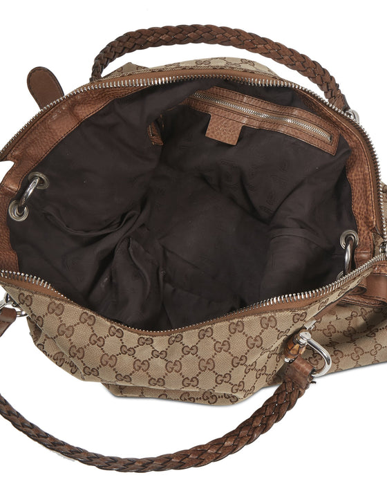 Brown GG Supreme Canvas Bamboo Bar Tote