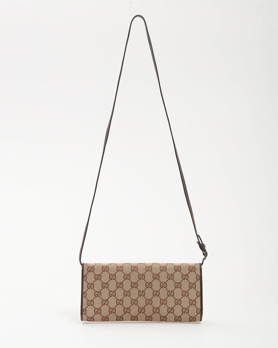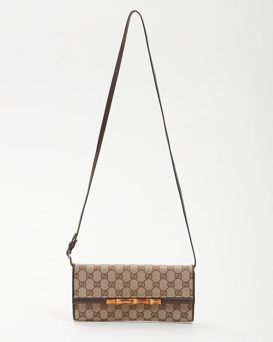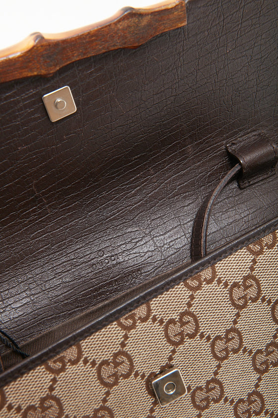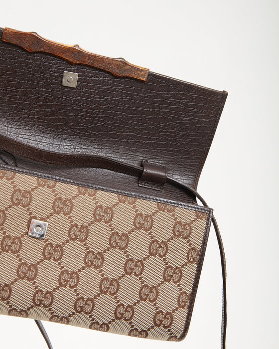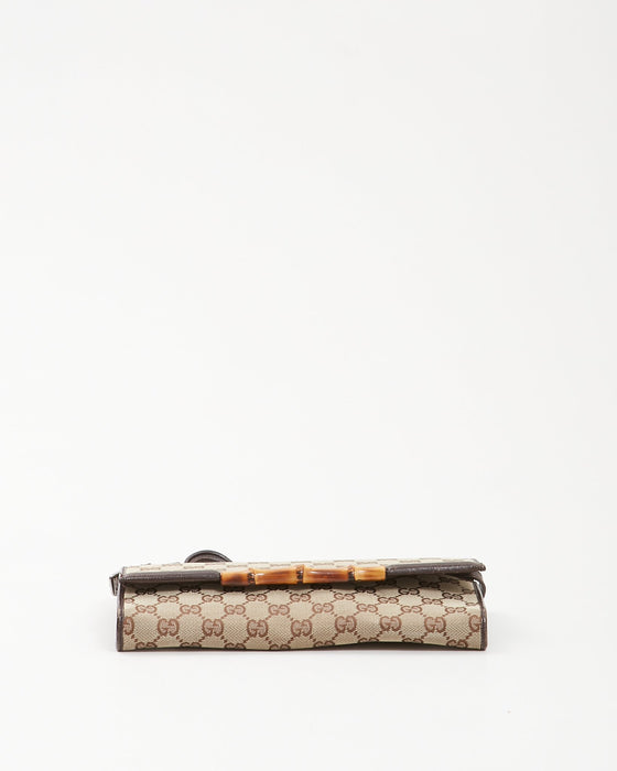 Brown GG Supreme Canvas Bar Bamboo Clutch