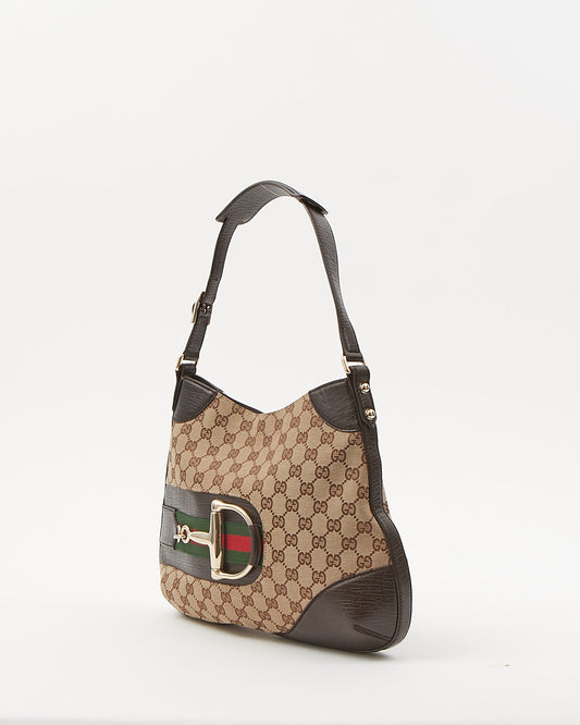 Brown GG Supreme Web Detail Horsebit Shoulder Bag
