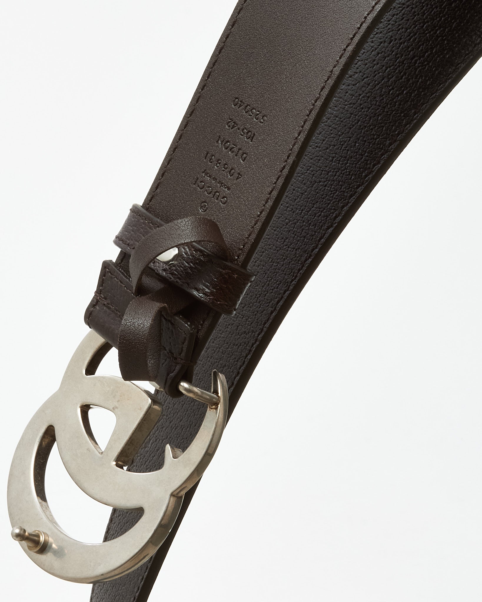Complete your look with iconic Gucci style in this pre-loved authentic Gucci Brown Leather SHW Interlocking GG Marmont Wide Belt - 105/42, crafted from smooth brown leather for a refined and versatile finish. The wide silhouette makes a bold statement, while the signature interlocking GG buckle in silver-tone hardware delivers unmistakable Gucci heritage. Designed to pair effortlessly with denim, tailoring, or layered over dresses and outerwear, this Gucci Marmont belt blends timeless craftsmanship with modern luxury appeal. A standout designer accessory that adds structure, polish, and classic branding to any wardrobe.